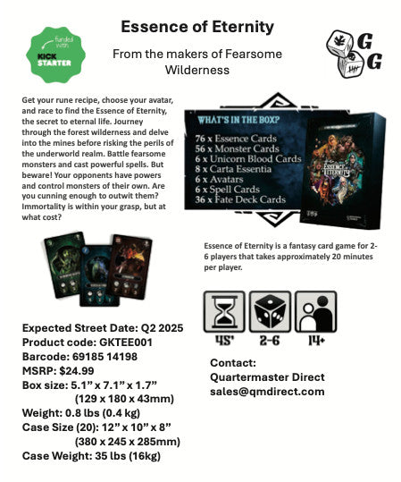 Get your rune recipe, choose your avatar, and race to find the Essence of Eternity, the secret to eternal life. Journey through the forest wilderness and delve into the mines before risking the perils of the underworld realm. Battle fearsome monsters and cast powerful spells. But beware! Your opponents have powers and control monsters of their own. Are you cunning enough to outwit them? Immortality is within your grasp, but at what cost?