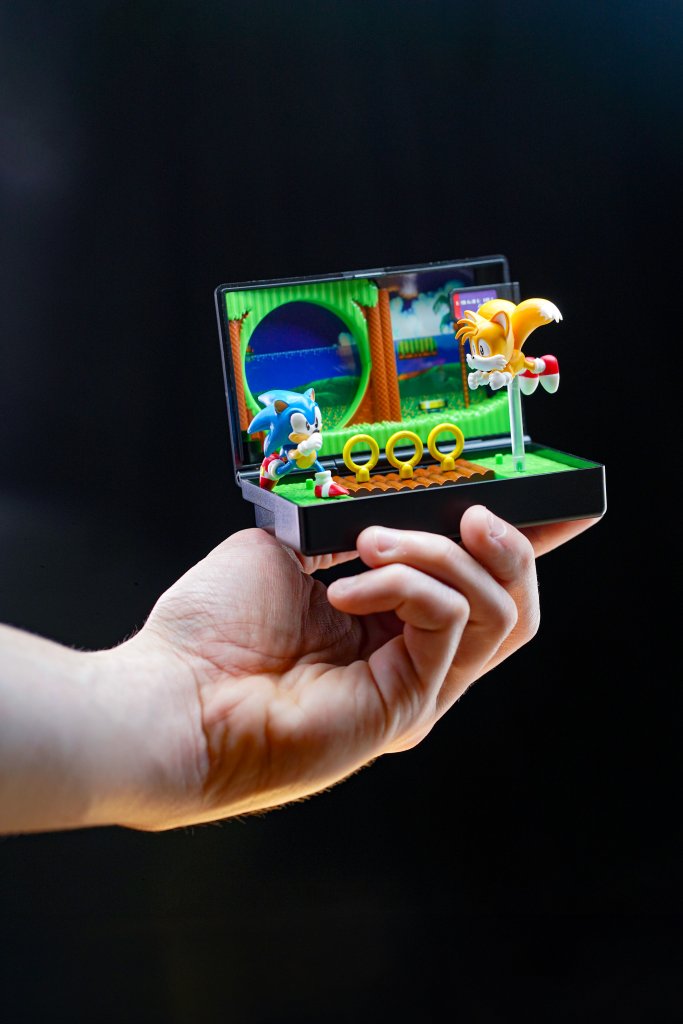 - Collectible diorama of Sonic the Hedgehog 2’s Emerald Hill Zone, housed in a foldable Sega Mega Drive cartridge replica.