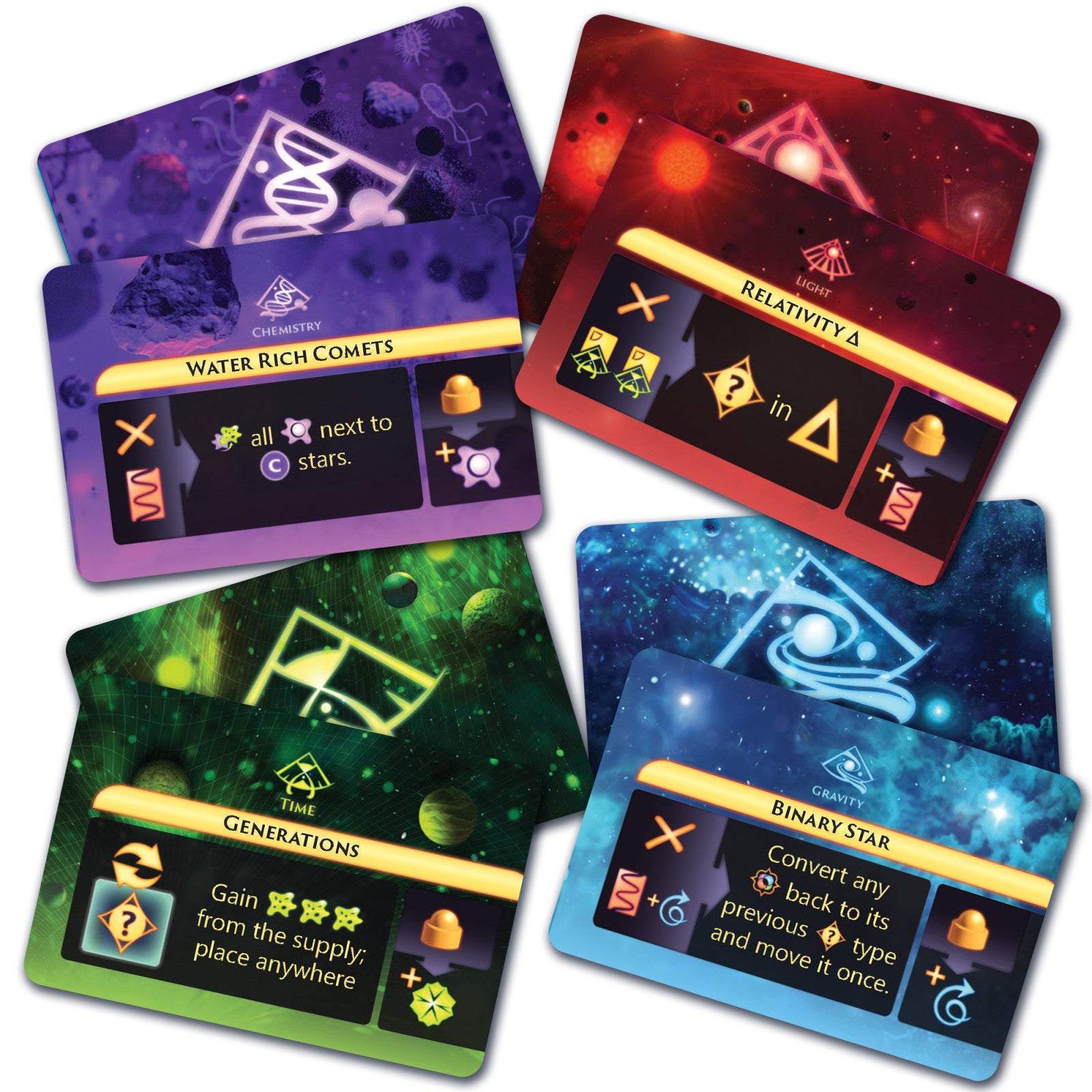 Use power cards for unique engine building powers. Use gravitons to move stars and life around the galaxy Score points from finish nebulas and creating advance life