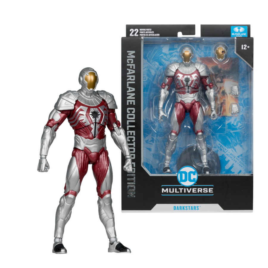 The Darkstars were formed to patrol space and destroy chaos by the Controllers, an aggressive sect of the Guardians of the Universe, and N.E.M.O., the Network for the Establishment and Maintenance of Order. Ferrin Colos of Zamba, joined the group and was assigned to Earth. After the Darkstars, L.E.G.I.O.N., and the Green Lantern Corps defeated the Triarch - a trinity of evil ancient deities - the three groups agreed on their separate peacekeeping roles in the universe. Features - Incredibly detailed 7" scale figure based on the DC Multiverse - Designed with Ultra Articulation with up to 22 moving parts for full range of posing and play - Darkstars as featured in DC comics - Accessories include 1 alternate head, 2 extra hands and figure display base - Also includes collectible art card with character art on the front, and character biography on the back - Collect all McFarlane Toys DC Multiverse figures