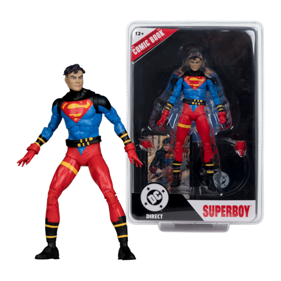 Some heroes are made, not born. A combination of Superman and Lex Luthor's DNA, Superboy was an outsider from his inception. Raised in a lab, and aged to maturity in the public spotlight, Superboy went from a young teenager with an attitude to a more mature veteran of the Super Hero team Young Justice. Features: - Superboy is based on his look from the Superboy #1 comic - Incredibly detailed 7" scale figure, designed with Ultra Articulation with up to 22 moving parts for full range of posing and play - Accessories include 2 extra hands and base - Also includes English-only reprint Superboy #1 comic book - Included collectible art card with character art on the front, and character biography on the back - Collect all McFarlane Toys x DC Direct Page Punchers figures