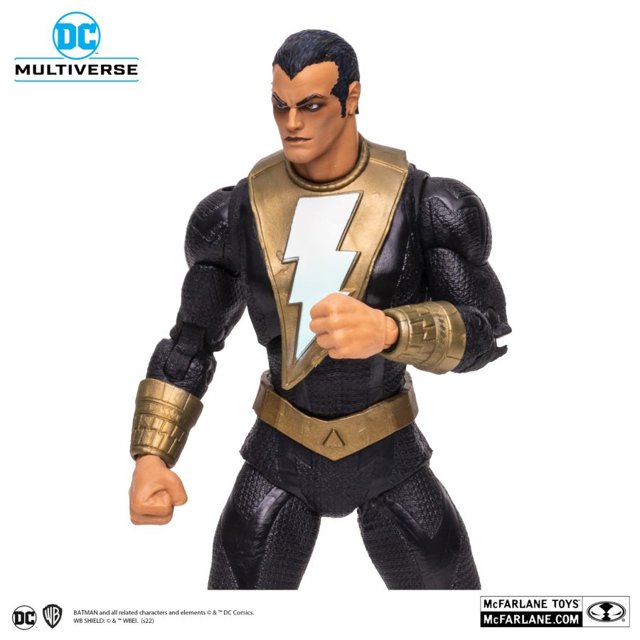 Centuries ago, the same wizard that granted Billy Batson the powers of Shazam!, bestowed mystical powers upon a pure-of-heart youth in ancient Egypt. But when the boy tried to share his power to save his dying uncle, his uncle stole it and became the legendary Super-Villain known as Black Adam! Black Adam has the same magical abilities as his Super Hero nemesis, Shazam!, but Adam's powers come from the Egyptian gods. Shu grants him stamina; Heru, speed; Amon, strength; Zehuti, wisdom; Aton, power; and Mehen, courage. Black Adam can also fly and is virtually invincible. Product Features: - Incredibly detailed 7" scale figures based off the DC Multiverse - Designed with Ultra Articulation with up to 22 moving parts for full range of posing and play - Black Adam is featured in his look in the comic Endless Winter - Includes slide on lightning and a base - Figure includes 1 of 4 pieces that when combined with the rest of the Endless Winter Build-a line will assemble The Frost King - Included collectible art card with figure photography on the front, and character biography on the back - Collect all McFarlane Toys DC Multiverse Figures