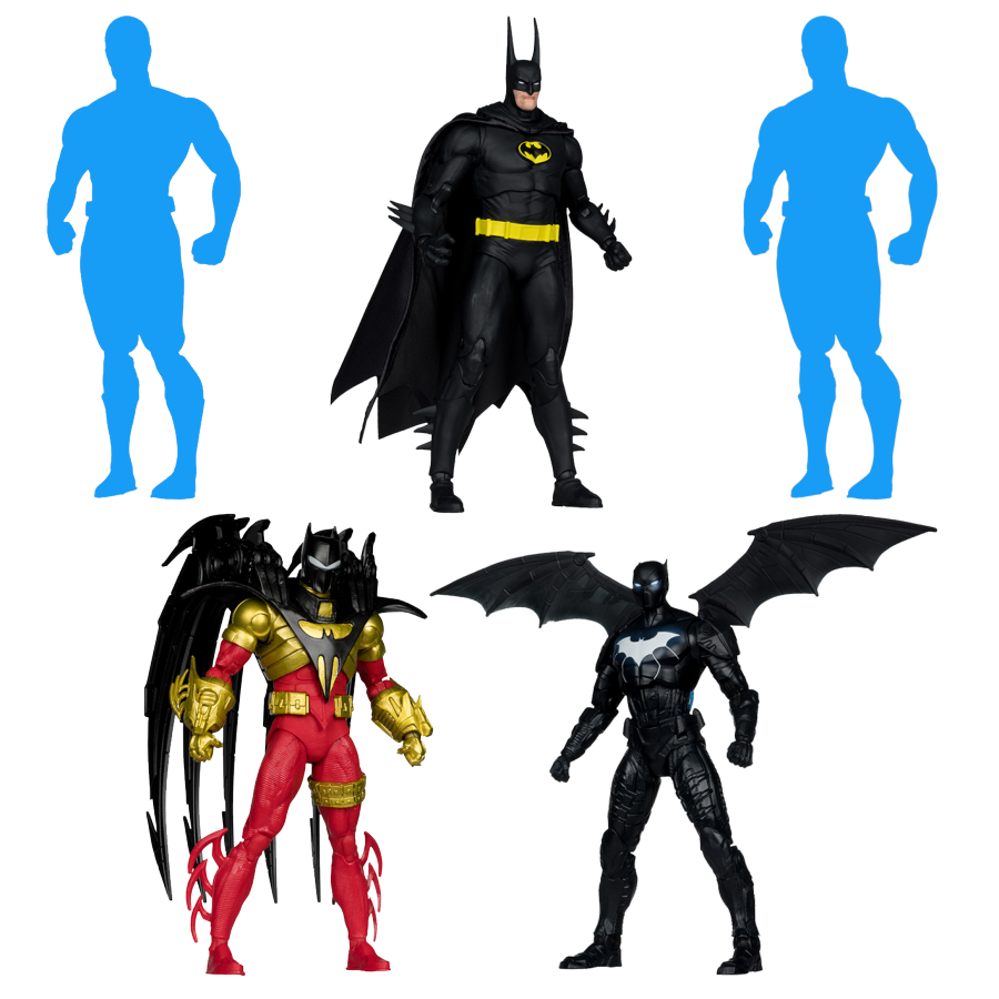 From the pages of DC Comics comes Wave 4 DC Multiverse figures! The 7-inch scale action figures contain up to 22 points of articulation and include character specific accessories. Each figure also has a collectable card ) 7" Figure 1x MCF17431 - DC Multiverse - Yellow Batman (Chase) 7" Figure 2x MCF17443 - DC Multiverse - Batman (Troika) 7" Figure