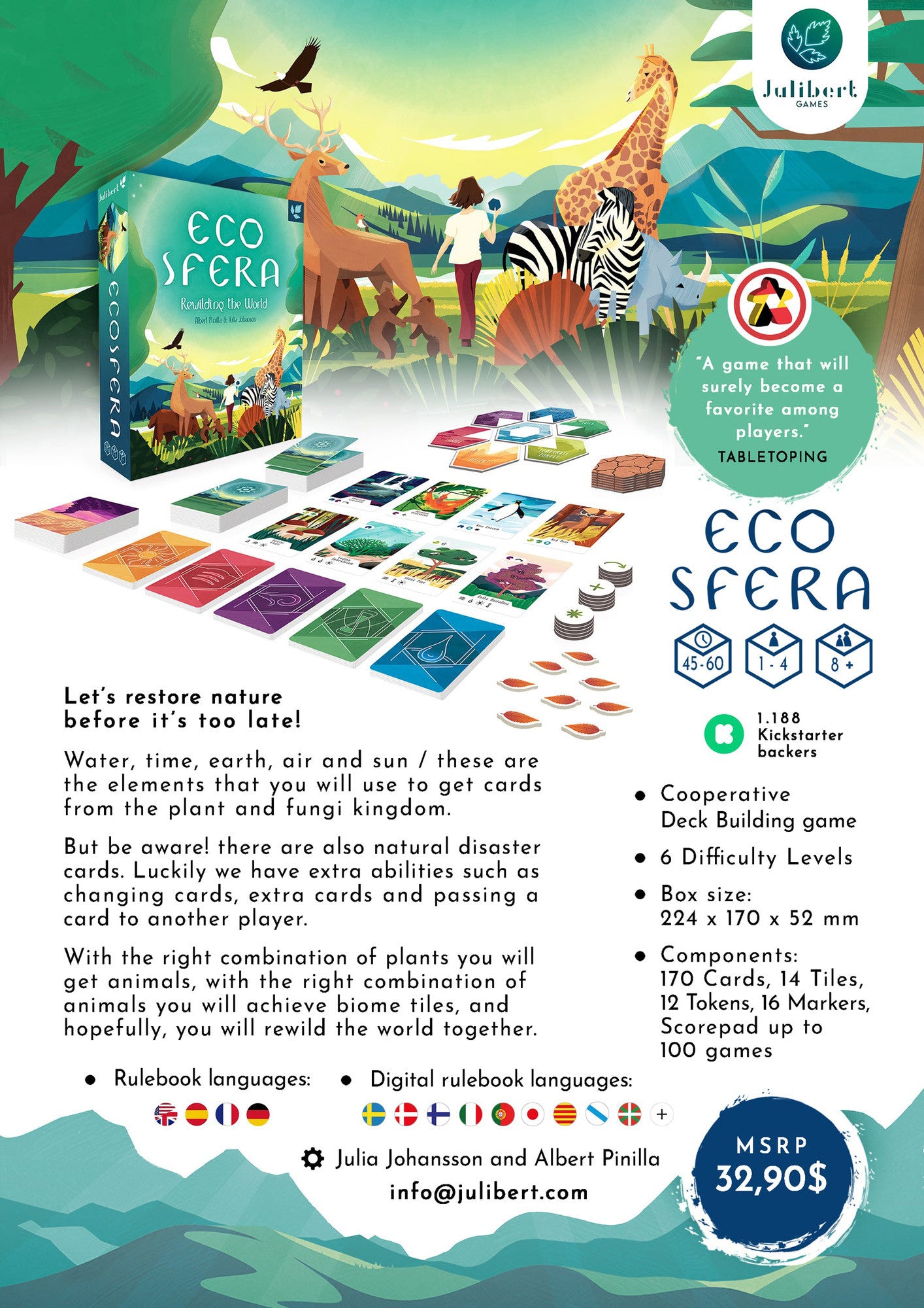 Ecosfera is a cooperative deck-building game with different levels of difficulty where we must restore nature before it’s too late.