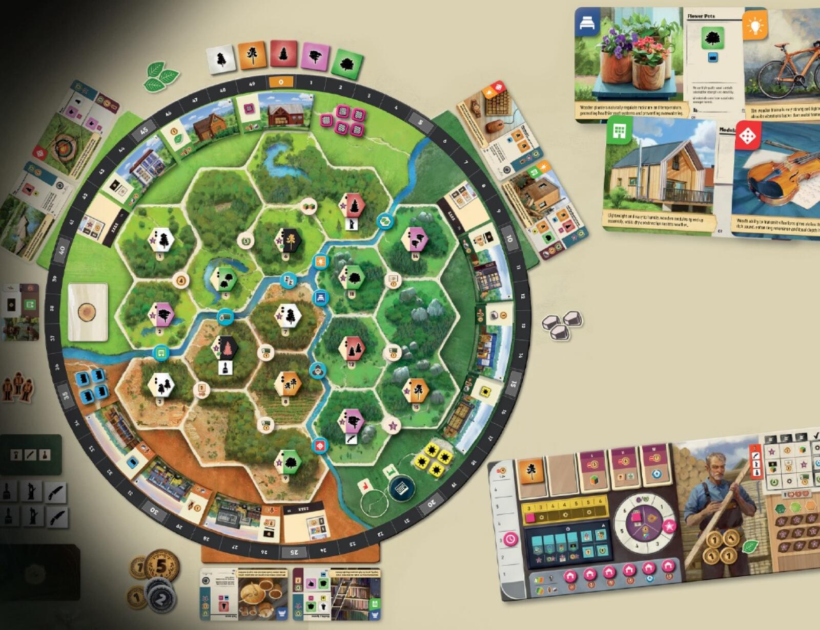 As a Eurogame focused on strategic action management, Forestry relies on a dual-worker system in which players control a harvester and a manager, each with distinct responsibilities. The harvester moves through the forest, felling trees to meet contract demands, replanting saplings, constructing infrastructure, and adjusting water retention to promote a healthy ecosystem. Meanwhile, the manager oversees resource collection, utilizes sawmill buildings, fulfills contracts, and optimizes wood processing. Players must carefully allocate action points between these workers to make sustainable choices, enhance infrastructure, and ensure the forest thrives while meeting demand.