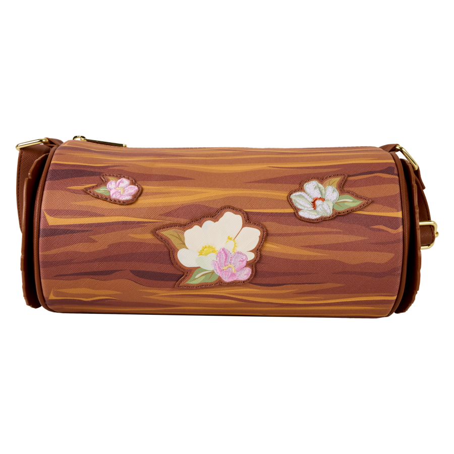 How cute is this crossbody bag?! It's perfect for any fan of Disney's The Fox and the Hound. This bag is in the shape of a log, and you'll find embroidered flowers on either side. Take a look at each end and you'll see Copper and Tod looking through the log! It's a fun way to uplevel your 'fit and show off one of your favorite Disney movies! Features - Faux leather (polyurethane) - Sturdy top handle - Adjustable crossbody strap - Applique, debossed, embroidered, and printed details - Coordinating interior lining Dimensions: - 10"W x 5"H x 5"D - 25.4cm W x 12.7cm H x 12.7cm D This is an officially licensed Disney product.