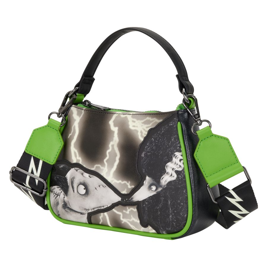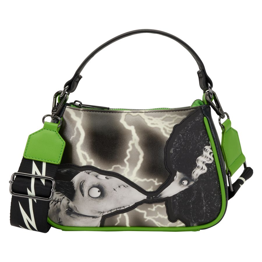 Electrifying style for the season is here! This crossbody bag features Sparky and Persephone from Frankenweenie. They're surrounded by glow-in-the-dark lightning strikes. Turn the bag around to find a swirling design that also glows in the dark. The adjustable crossbody strap has a lightning design on it. It's the perfect accessory to have some spooky fun with your outfit all season long! Features - Faux leather (polyurethane) - Adjustable crossbody strap - Glow in the dark - Applique, glitter, and printed details - Coordinating interior lining Dimensions: 9" W x 6" H x 3" D 22.8cm W x 15.2cm H x 7.6cm D This is an officially licensed Disney product.