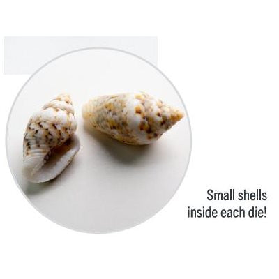 Pack contains a set of 7 dice: 1 four-sided die (D4), 1 six-sided die (D6), 1 eight-sided die (D*), 2 ten-sided dice (D10 and D00), 1 twelve-sided die (D12) and 1 twenty sided die (D20)