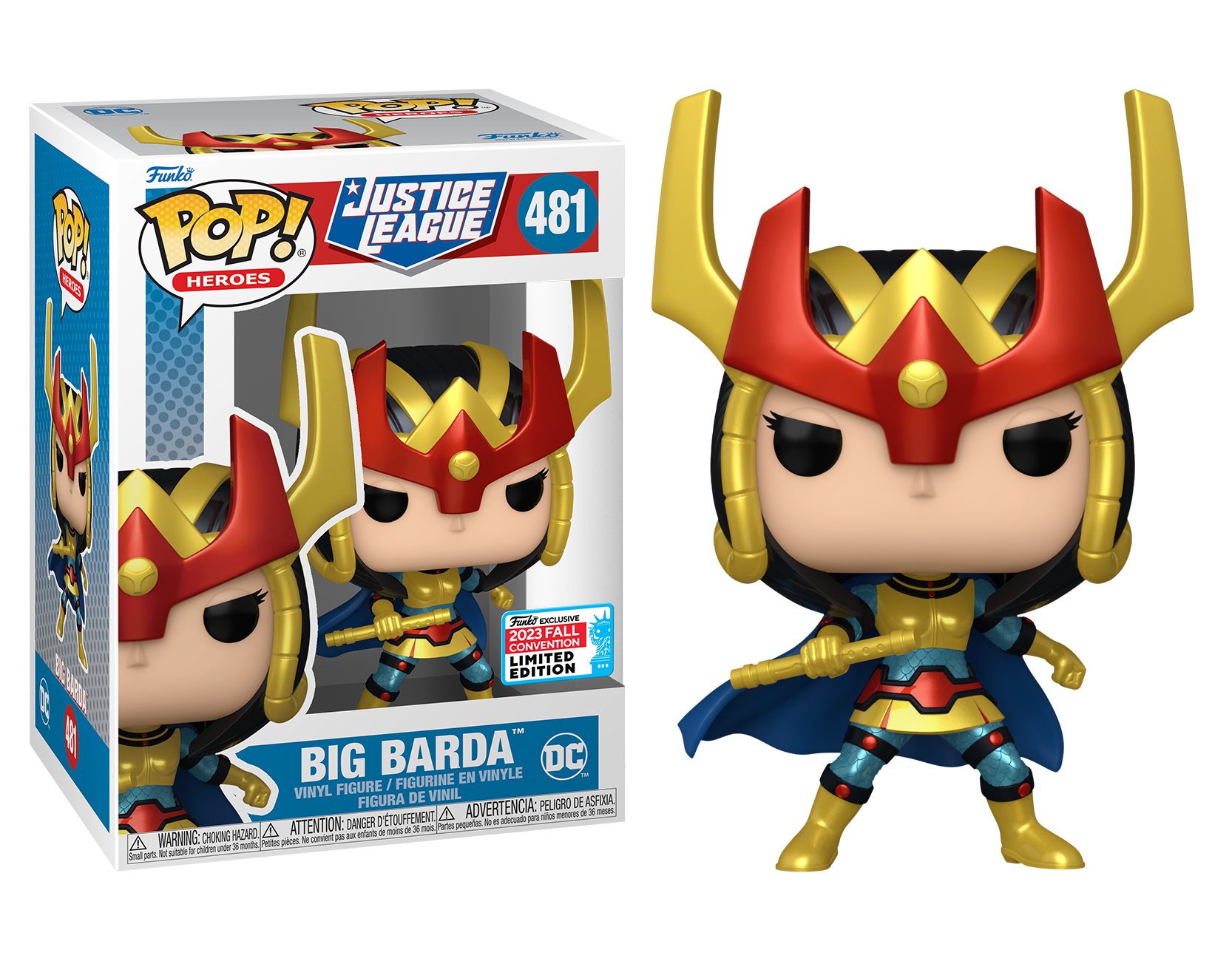 Introducing the Justice League - Big Barda NYCC 2023 Fall Convention Exclusive Pop! Vinyl, a heroic collectable for fans of the legendary superhero team. This limited-edition Pop! Vinyl showcases the mighty Big Barda, a formidable member of the Justice League, in striking detail, capturing her strength and warrior spirit. Standing at approximately 3.75 inches tall, this exclusive figurine is a must-have for Justice League aficionados and dedicated Pop! Vinyl collectors. Don't miss your chance to bring the power of Big Barda into your collection – secure your Big Barda Pop! Vinyl today before she takes her rightful place among your heroes!