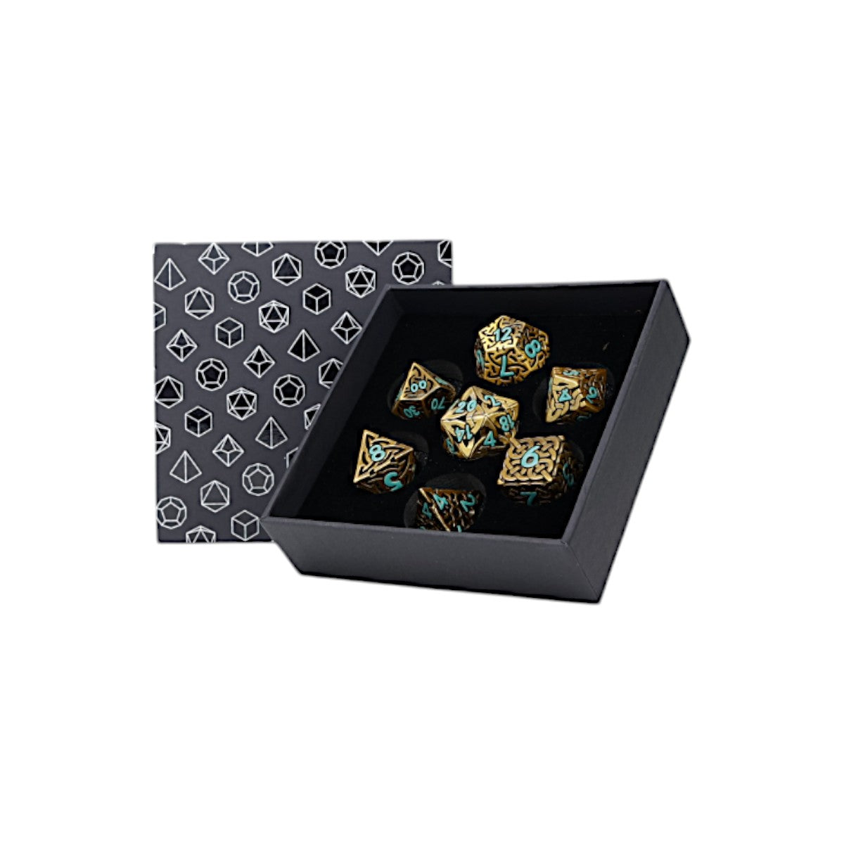 Unleash your inner adventurer with this stunning set of metal dice, perfect for Dungeons & Dragons and other tabletop RPGs. Crafted from durable zinc alloy, these dice boast intricate designs and eye-catching colorways that will stand out on any gaming table. The set comes nestled in a premium gift box, making it an ideal present for the dice goblin in your life.
