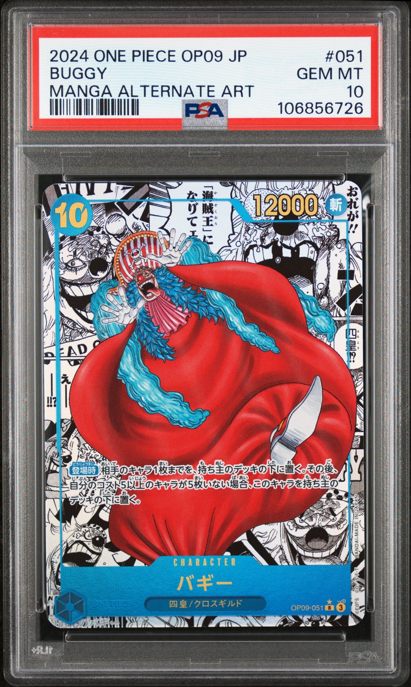 2024 One Piece Japanese Op09-Emperors In The New World Buggy 051 Manga Alternate Art - PSA 10