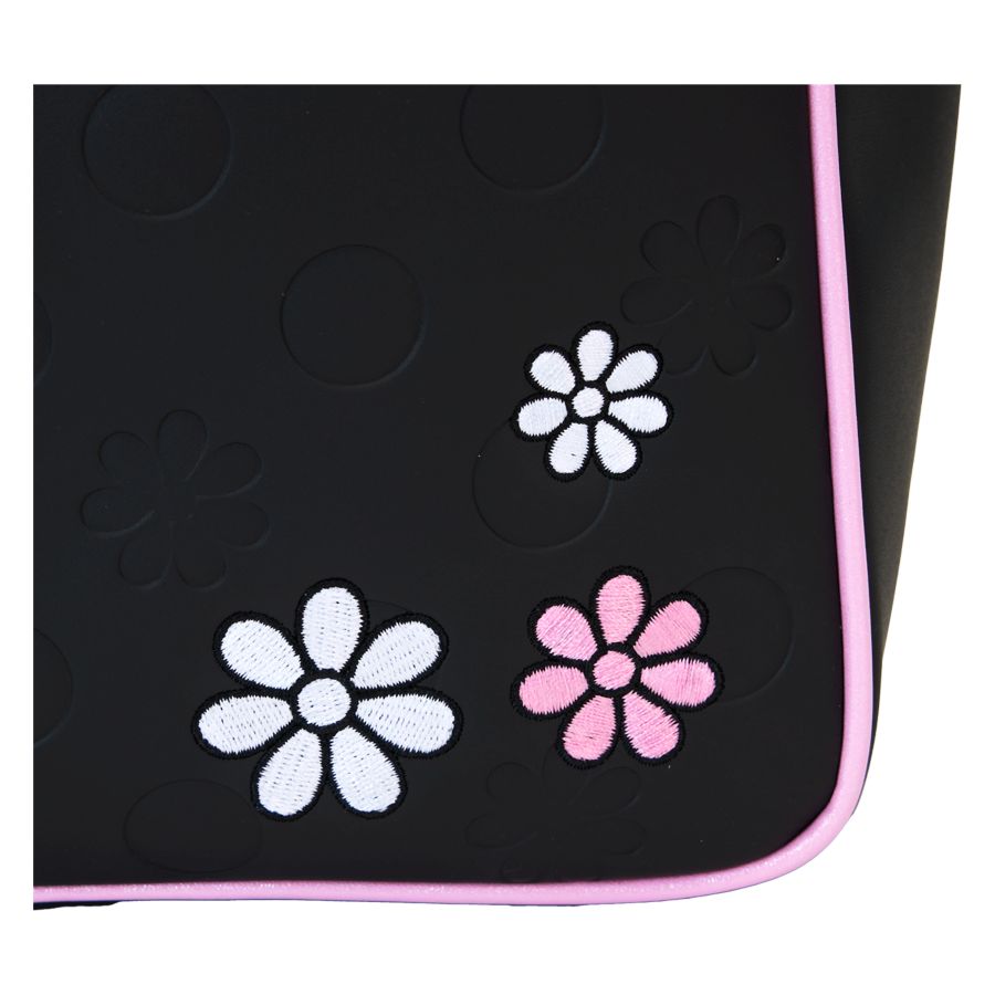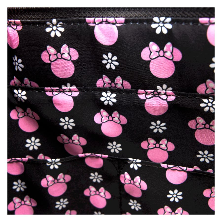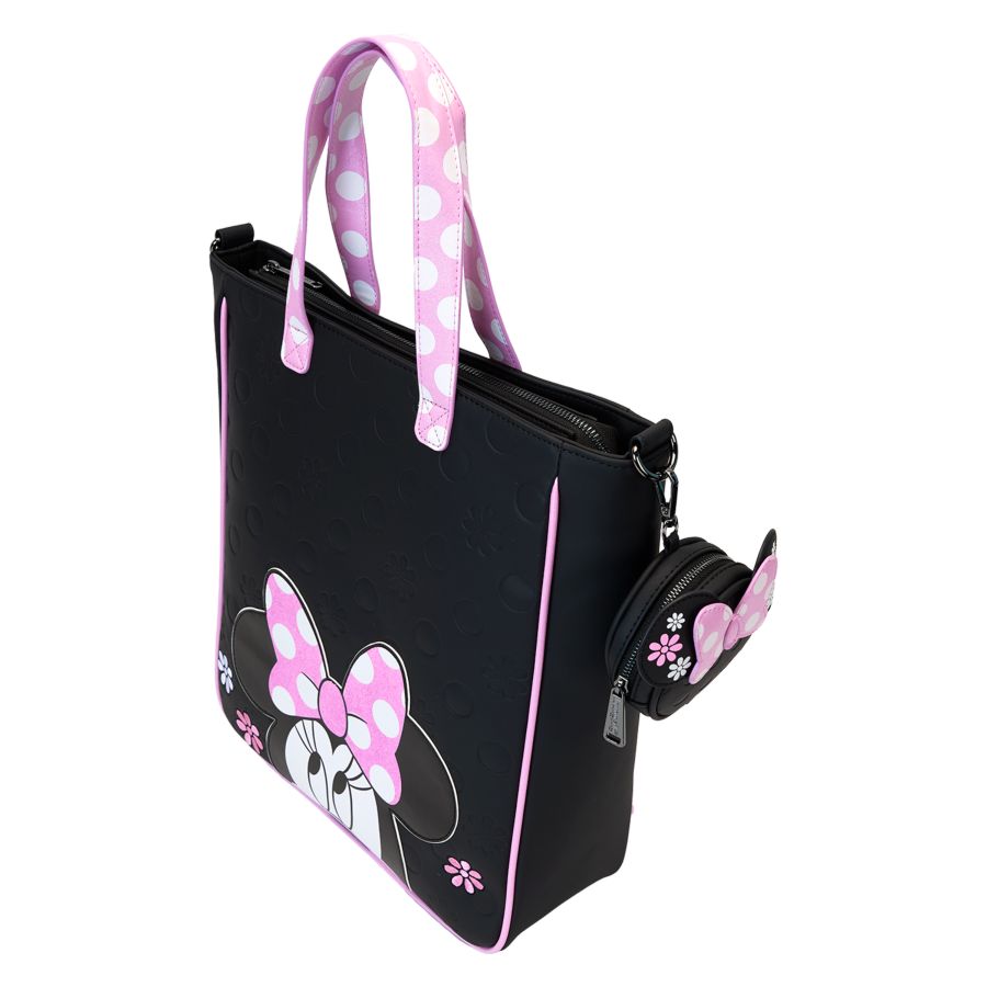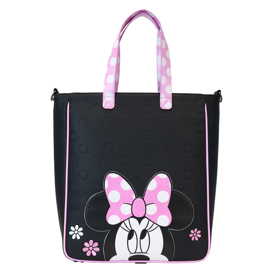 A true fashionista knows how to add flair to their everyday wear. Taking inspiration from Minnie Mouse, this Rock the Dots collection features embroidered flowers and glitter details to create a look thats one of a kind. Bring this tote bag on your next outing for a sophisticated twist on a signature style! Features: - Vegan leather (polyurethane) - Adjustable (detachable) shoulder strap - Top handles - Detachable vegan leather coin bag - Gunmetal hardware - Applique, debossed, embroidered, glitter, padded, and printed details - Coordinating inside lining Dimensions: 11.5"W x 13"H x 4"D This bag is an officially licensed Disney product.
