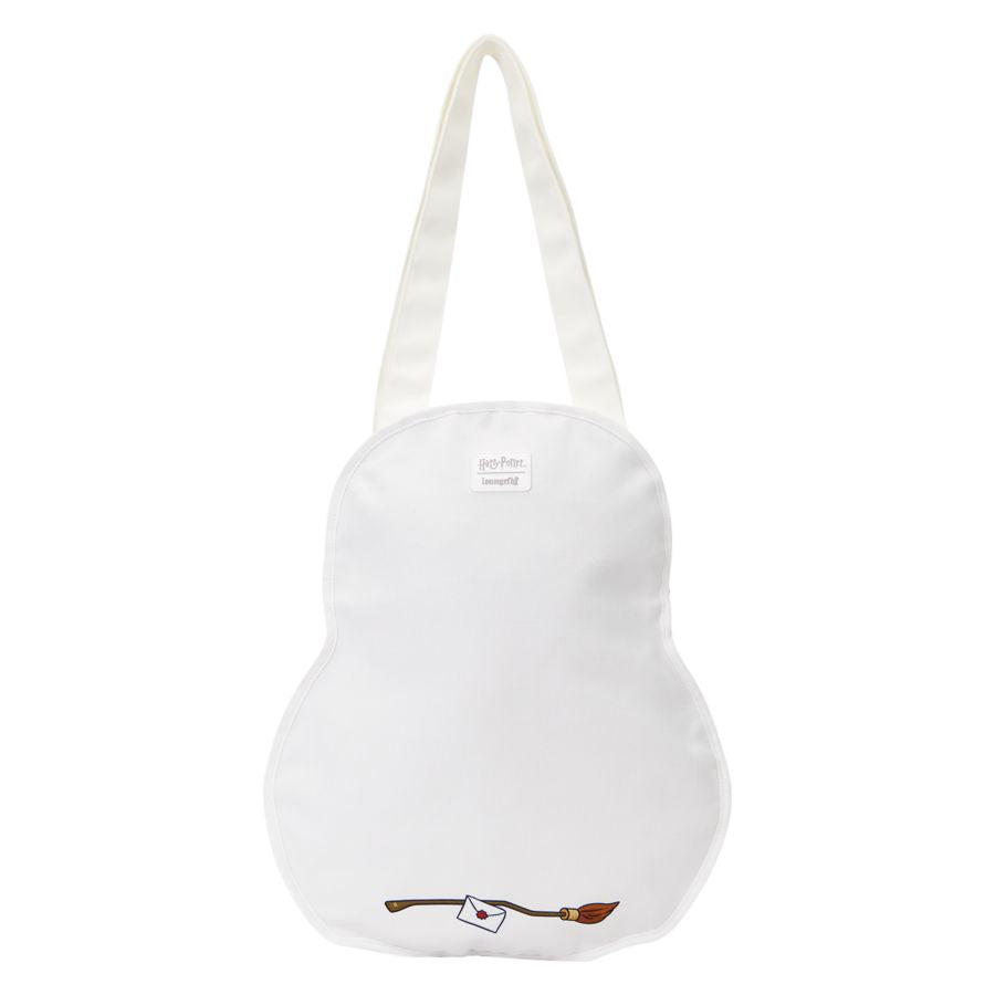 Take flight with the cutest tote bag EVER! This canvas tote bag is in the shape of Hedwig from Harry Potter. The bag features printed details of Hedwig on one side. On the other side, you'll find the image of a broomstick with a Hogwarts letter. The bag zips open so you have plenty of space to hold your essentials and can zip up the bag to keep them safe! Features - Canvas tote bag - Printed details - Zippered compartment Dimensions: - 15"W x 18.5"H x 2"D - 38.1cm W x 47cm H x 5cm D This is an officially licensed Warner Bros. product.