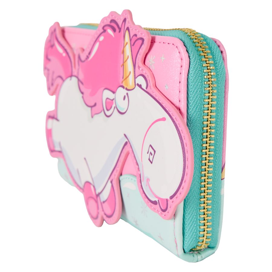 Pulling out a unicorn wallet is ICONIC. Be the moment and spark some joy with this must-have accessory. On the front, you'll find Agnes' unicorn, complete with embroidered details, glitter, and a padded applique. Turn it around to find a rainbow on the back with holographic foil and shimmery faux leather. Inside, you'll find four card slots and one clear ID slot to hold your essentials. It's cute, it's iconic, and it's perfect for any season! After all, unicorns never go out of style. Features - Faux leather (polyurethane) - Zippered closure - 4 card slots & 1 clear ID slot - Foil, applique, embroidered, glitter, shimmer faux leather, and printed details - Coordinating interior lining Dimensions: - 6"W x 4"H - 15.2cm W x 10cm H This is an officially licensed Universal product.