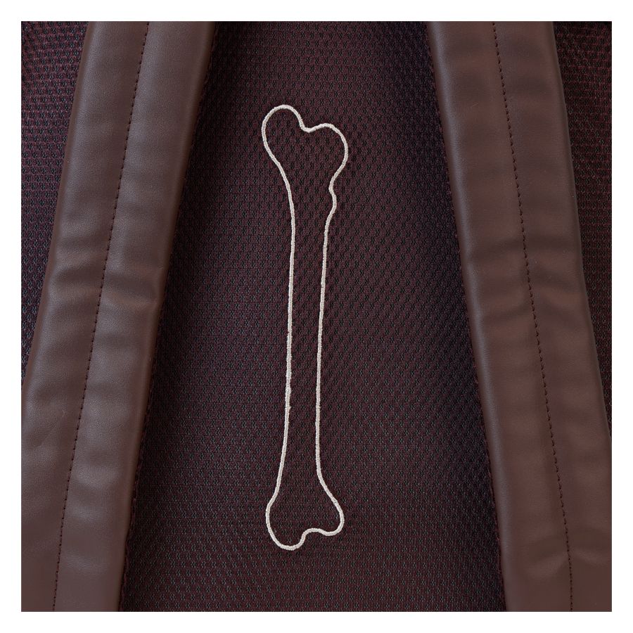 Best friends for eternity! Show some love for this ghostly pup with a full-size backpack designed to thrill. Look closely, and you'll see a heart-shaped door to another world. With so many scream-worthy details, this accessory is a must-possess item for fans of Disney Tim Burton's The Nightmare Before Christmas. Features: - Vegan leather (polyurethane) - Adjustable shoulder straps - Front zipper pocket - Side drop pockets - Shiny gold hardware - Applique, embossed, metallic foil, embroidered, and printed details - Coordinating inside lining Dimensions: 12"W x 18"H x 5"D This backpack is an officially licensed Disney product.