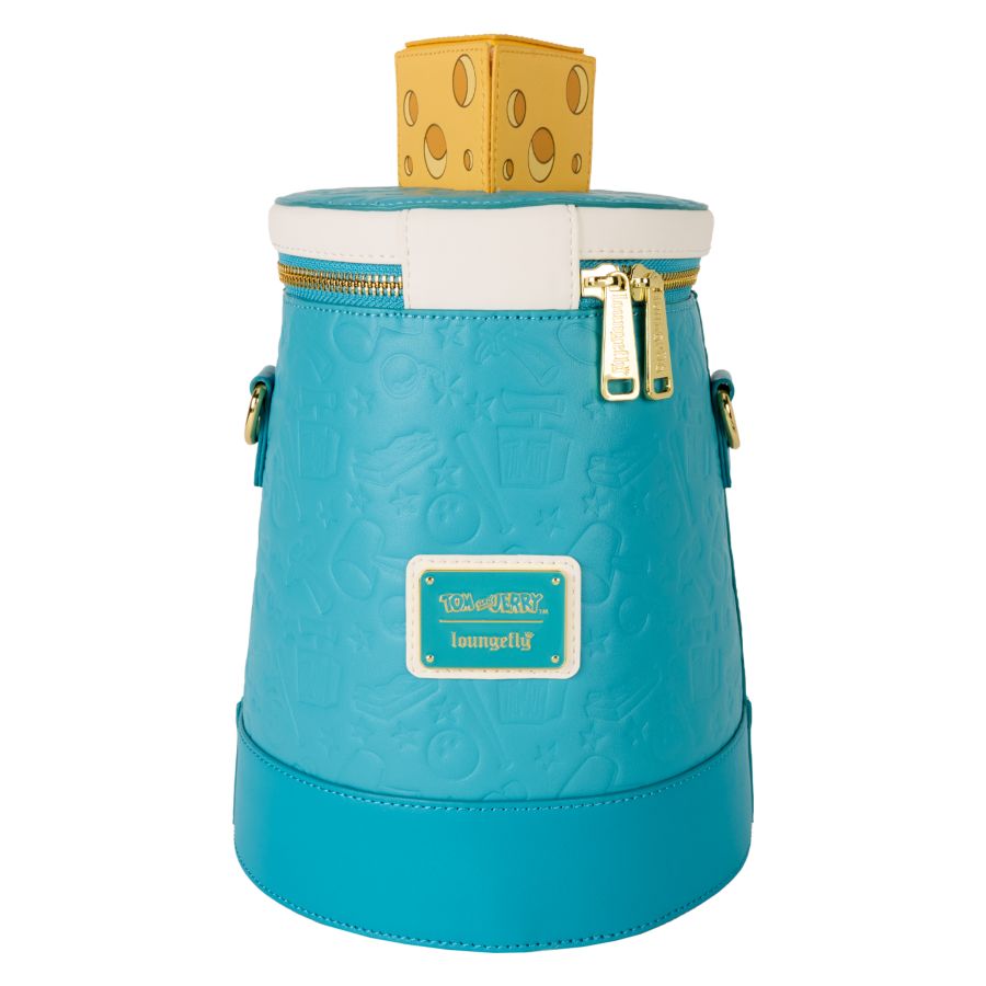 Make a fashion statement with Tom and Jerry! This crossbody bag is almost like wearing the cartoon! You'll find a panel that shows an image of Tom chasing Jerry on the front. You can spin the scene with a knob at the bottom so it changes to another scene! All over the rest of the bag, you'll find debossed motifs inspired by the show. This is a perfect piece for any Tom and Jerry fan you know! Features - Faux leather (polyurethane) - Spinning rivet scene - Adjustable shoulder strap - Applique, debossed, and printed details - Coordinating interior lining Dimensions: - 7.5"W x 12.5"H x 6"D - 19cm W x 31.7cm H x 15.2cm D This is an officially licensed Warner Bros. product.