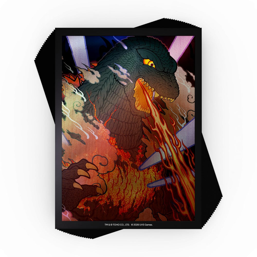 Protect your cards in style with these brand new sleeves featuring Burning Godzilla from the Godzilla: Reign of Kaiju UniVersus release!