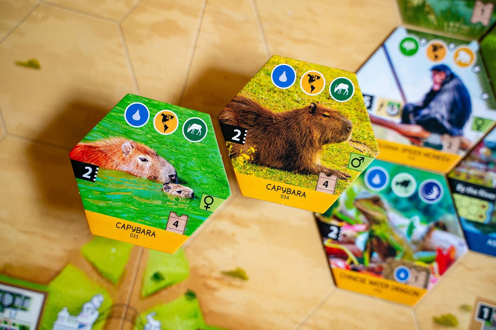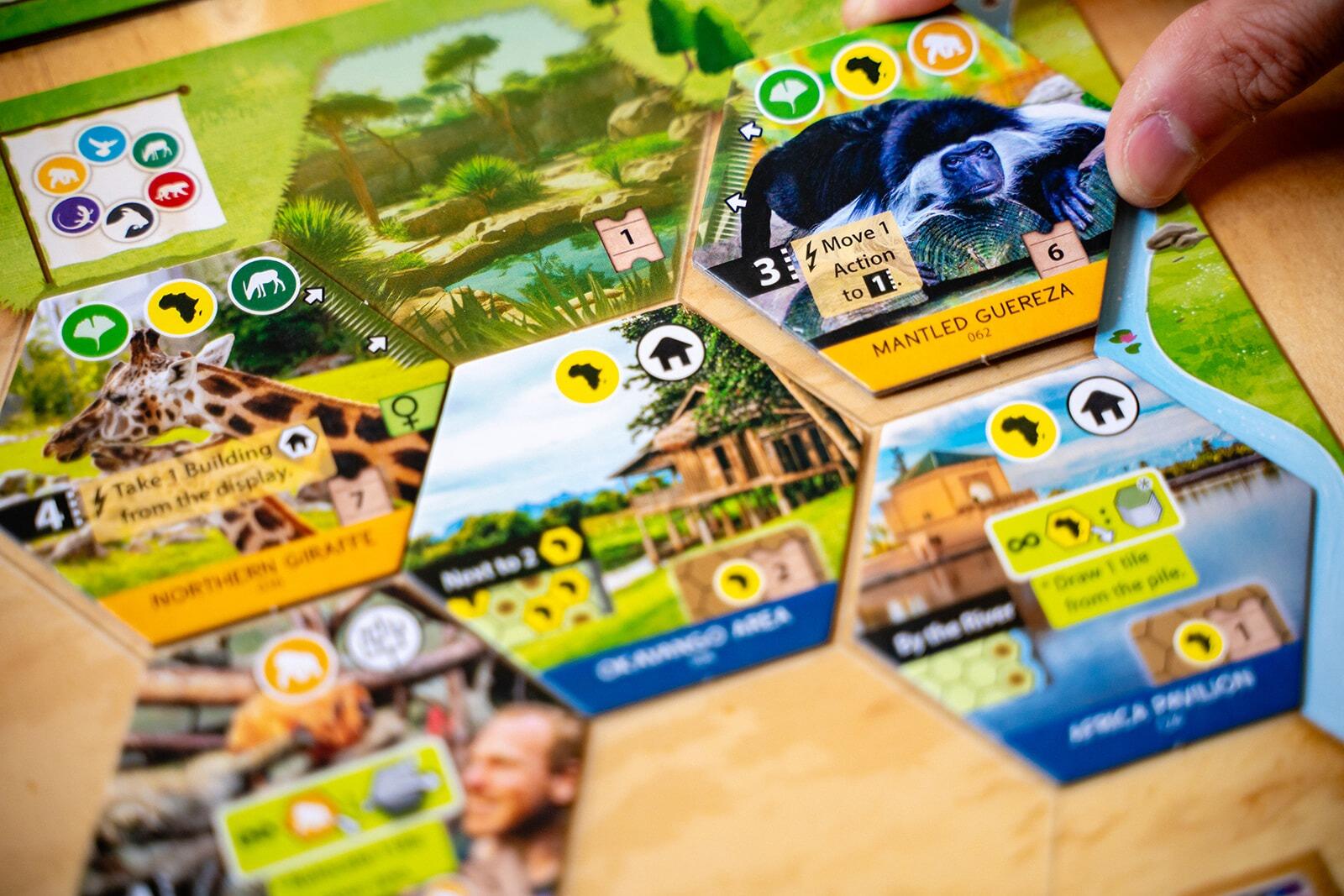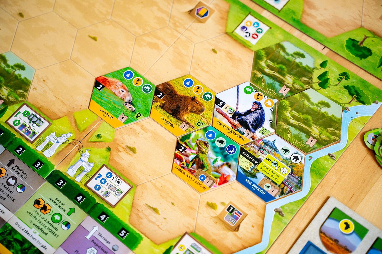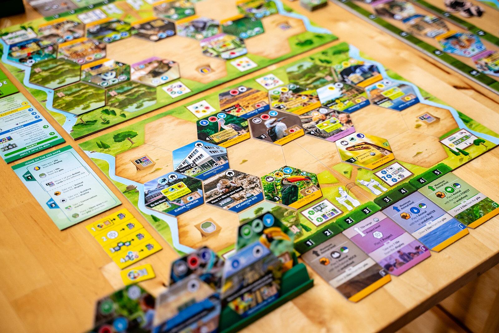Sanctuary is based on its predecessor Ark Nova, but modifies and simplifies many of the mechanisms of that game in an elegant and surprising manner. Your goal to find the best way to puzzle together your animals, buildings, and projects on your zoo map is an ongoing pleasure!