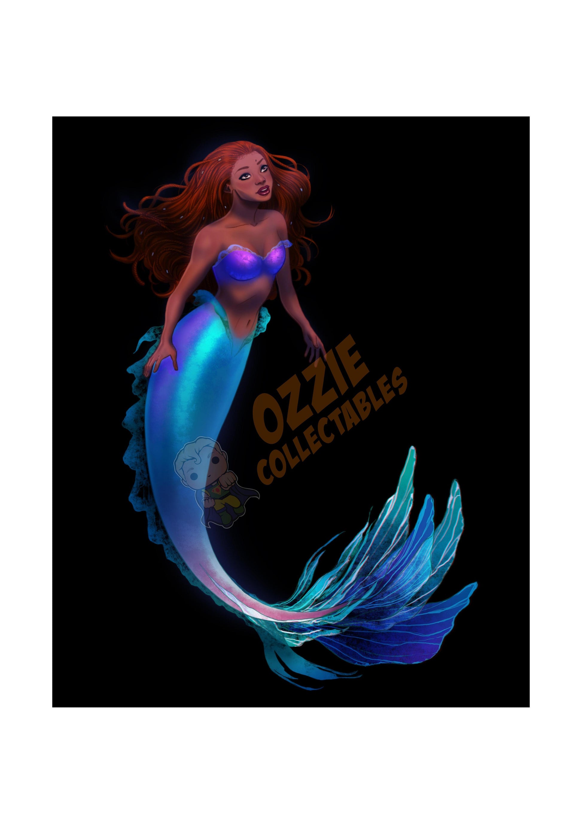 This Little Mermaid Patrick Mifsud art print poster provides vibrant colours and stunning fan-art of the Little Mermaid's (2023) Ariel. It will bring any room alive as a beautiful keepsake for any fan. Ariel swims in the depths of the ocean, wishing to be part of the human world.