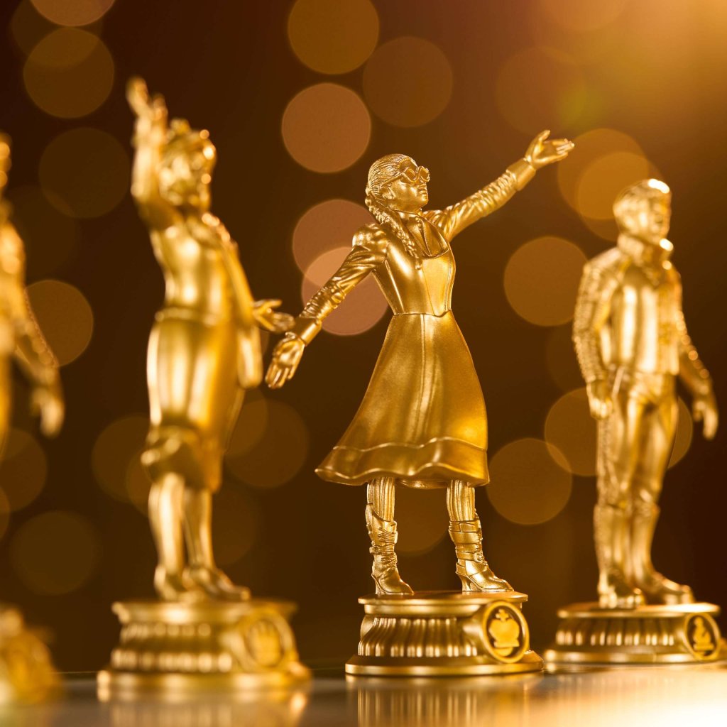 • This set includes 32 game pieces modeled after the beloved Wicked characters, finished in shimmering gold to represent their time at Shiz University and gleaming emerald green once they’ve been changed for good