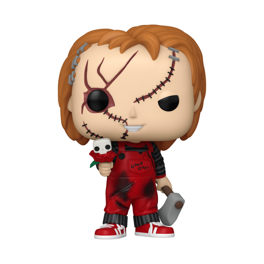 Carve up some room in your Chucky collection for Pop! Chucky! Reimagined in a festive red and black ensemble, this Valentines Day Pop! Chucky isnt interested in playing around; hes ready to stab his way into the heart of your Chucky lineup. Vinyl figure is approximately 3.85-inches tall.