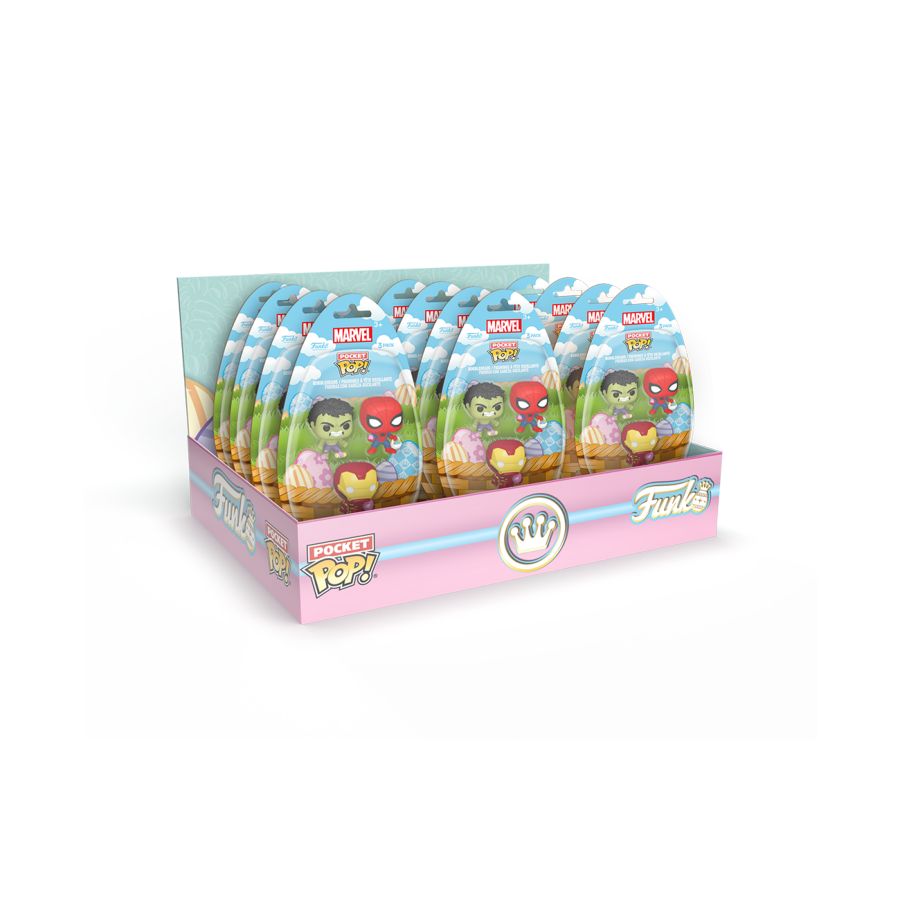 Hop into your favorite springtime celebrations with the Marvel Super Hero Pocket POP! Egg! This 3-pack includes Pocket POP! The Hulk, Pocket POP! Spider-Man, and Pocket Pop! Iron Man! Fill your holiday basket to the brim when you seek out these festive Marvel Super Heroes for your collection in their charming, egg-themed packaging. Vinyl collectibles are approximately 1.5-inches tall. Warning: Choking Hazard. Collectibles are small. Not for children under the age of 3 years old.
