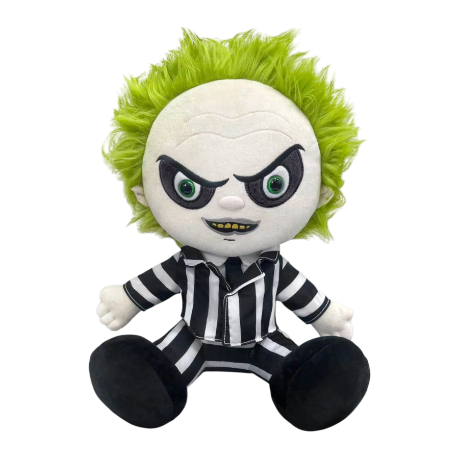 - BEETLEJUICE by KREEPTURES. - Official licensed collaboration. - Super-soft luxe plush. - Beetlejuice striped suit. - Synthetic hair. - Height 29cm / 11.4", Width 25cm / 9.8" To Hold, Hug or Hail. Care tip: Due to the protective nature of our packaging, your KREEPTUREs hair may appear flat upon arrival. To resurrect its true form, we recommend gently brushing and primping the hair. Suitable from 0+ years. Product and decoration may vary. With KILLSTAR branding, Shell Fabric: 100% Polyester, Second Shell Fabric: 56% Polyester 44% Acrylic, Filling: 100% Polyester, EXCLUDING TRIMS Hand wash delicate 30°c / Do not bleach / Do not tumble dry / Do not iron / Do not dry clean. Imported. BEETLEJUICE and all related characters and elements © & Warner Bros. Entertainment Inc.