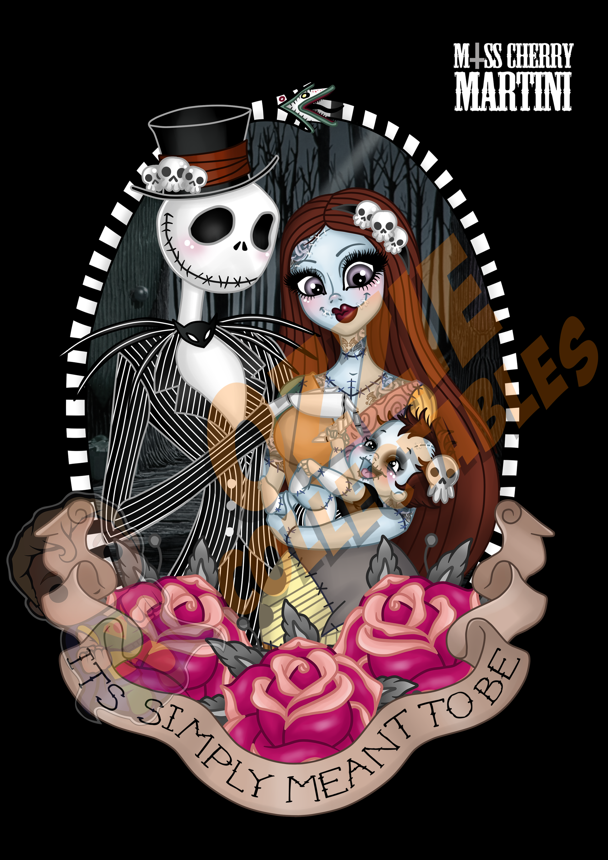 Inspired by the Tim Burton, Henry Selick, Disney team-up turned cult classic Halloween holiday phenomena that is The Nightmare Before Christmas, this stunning and oh-so-spooky print by Rose Demon features the pair that were simply meant to be, plus their creepy new bundle of joy! A perfect gift for your spooky sweetheart, the Disney obsessed couple in your life, or as a portrait to hang in the living room to celebrate a new family.
