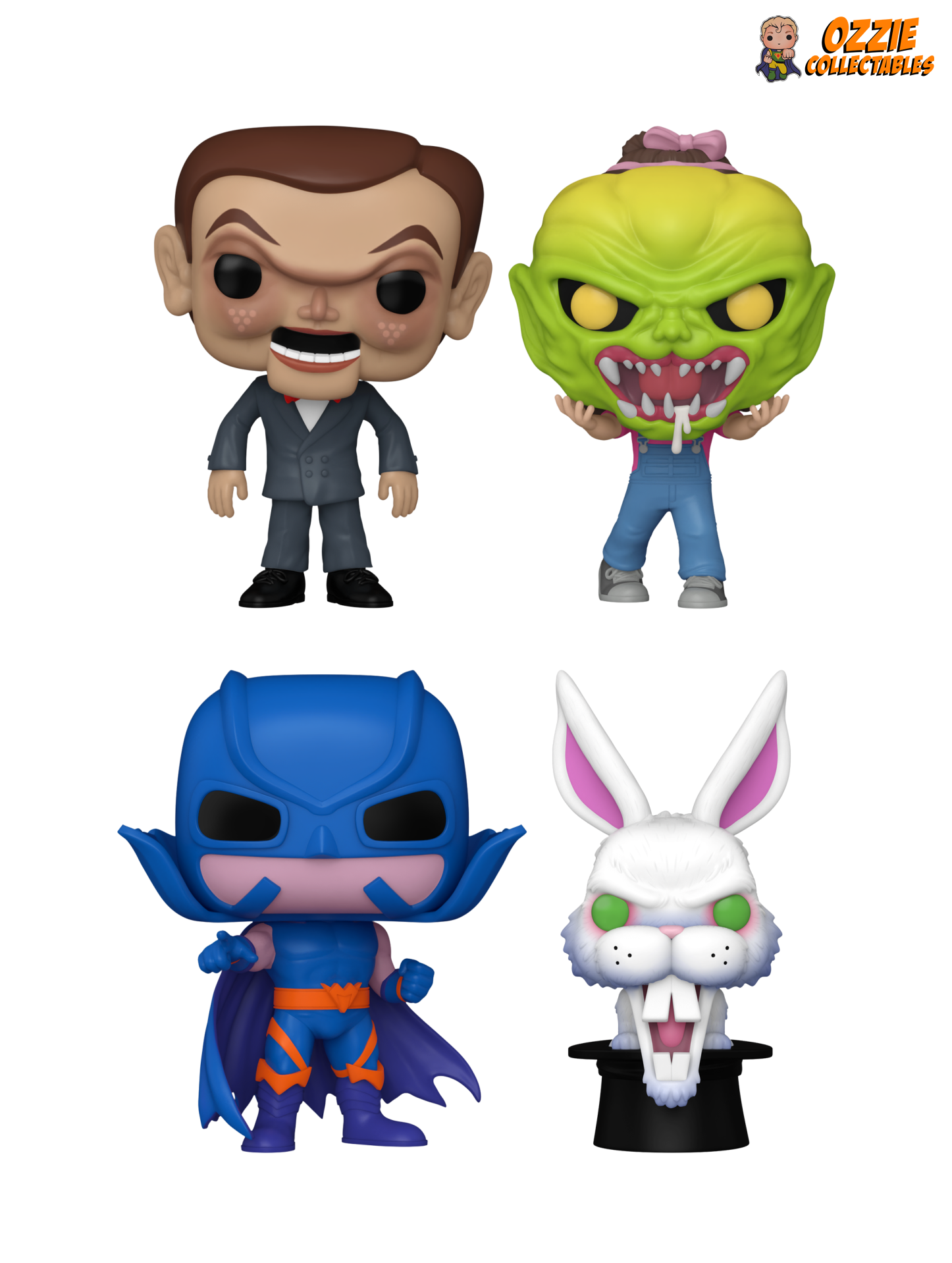 Dive into the spine-tingling world of R.L. Stine with the Goosebumps Bundle featuring four iconic POP! Vinyl figures! This discounted Funko collection includes the eerie Night of the Living Dummy, the hauntingly cool Haunted Mask, the mutant menace from Attack of the Mutant, and the whimsical terror of Bad Hare Day. Each figure captures the essence of these classic tales, making them perfect for collectors and fans alike. Plus, every bundle comes with free Pop Protectors, ensuring your new frightful friends stay safe and sound. Don't miss your chance to bring home this chillingly fun set!