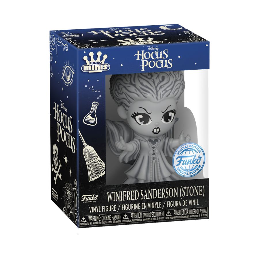 The Sanderson sisters are back and here to put a spell on your collection as the exclusive Hocus Pocus Minis! Each figure features one of your favorite witches as an adorable collectible. Theres Winifred Sanderson, Sarah Sanderson, Mary Sanderson, and Winifred Sanderson (Stone). Collect them all! Vinyl figure is a maximum of 3 in (7.6 cm) tall. Height varies depending on figure. One collectible per single package purchase.