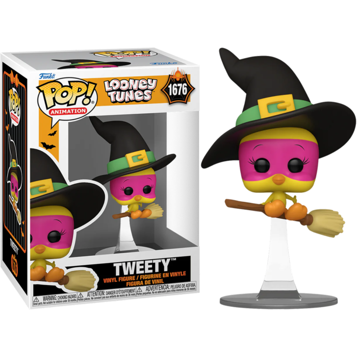 Keep an eye out for a mischievous puddy tat! It's time to scare up some shenanigans with Pop! Tweety Bird in a frightfully fun witch costume! This comical character will make the perfect addition to your Looney Tunes collection. Vinyl figure is approximately 4.05-inches tall.