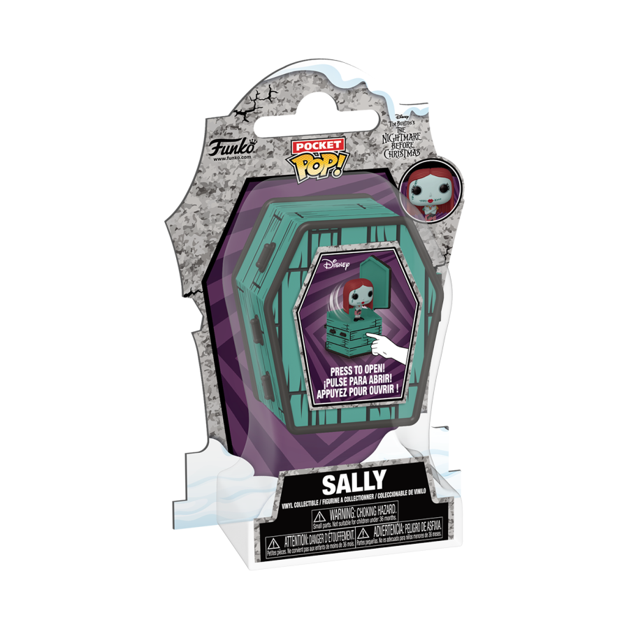 Pop open a frightfully fun surprise with Pocket POP! Sally! Concealed within a charming, coffin-shaped popper, Pocket POP! Sally is ready to appear at the push of a button! Expand your collection by making this popper the next addition to your The Nightmare Before Christmas lineup. Vinyl popper is approximately 2.1 in W x 2.4 in H x 1.4 in D (5.3 cm W x 6.1 cm H x 3.6 cm D) tall. Vinyl figure is approximately 1.5 in (3.8 cm) tall. Warning: Choking Hazard. Collectibles are small. Not for children under the age of 3 years old.