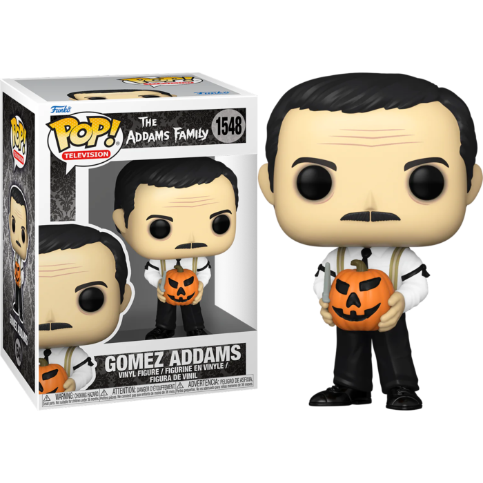 Gather your creepy and kooky relatives; Pop! Gomez Addams has arrived! Expand your Addams Family collection with this Pop! Gomez Addams with jack-o-lantern! Vinyl figure is approximately 3.9-inches tall.