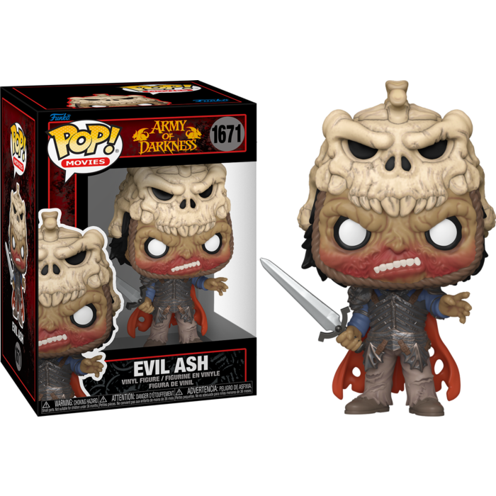 Ash Williams has been pulled into the Middle Ages to fight the forces of the undead! Now he must face his evil doppelganger, Pop! Evil Ash! Expand your collection by summoning this exclusive Pop! with metallic details to your Army of Darkness lineup.