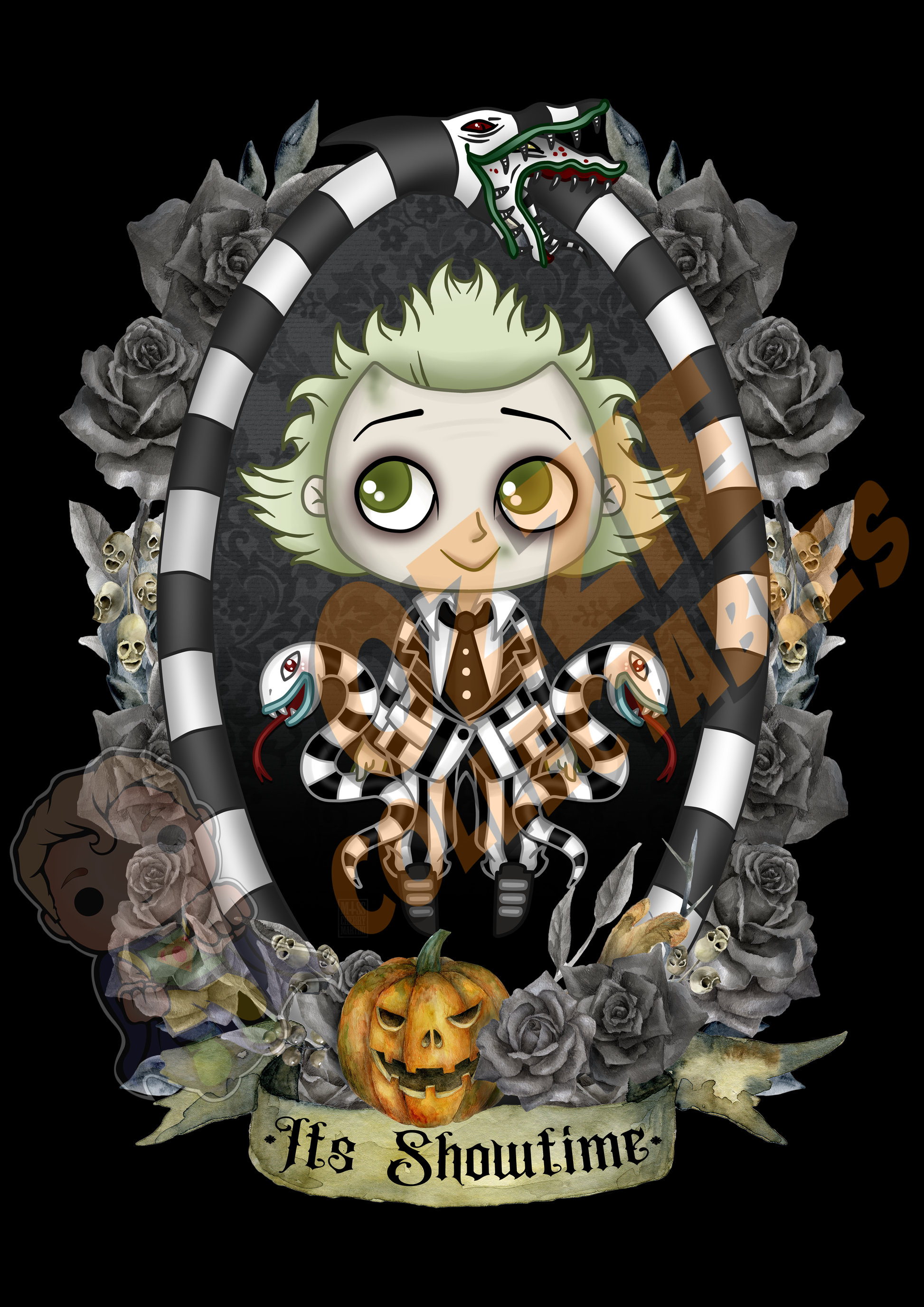 He's the ghost with the most, babe! Inspired by Tim Burton's 1988 cult classic Beetlejuice, Rose Demon brings the titular bio-exorcist to life in a super cute and gothic art print. Hang him around your home to bring some Halloween cheer year-round, or pop him anywhere that needs a touch of spooky magic!