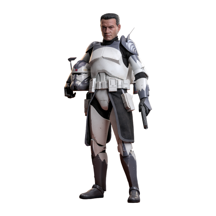 Clone Commander Wolffe (clone designation CC-3636) once served under General Plo Koon in the Clone Wars, as commander of the tight-knit unit known as the Wolf Pack. A seasoned and battered combatant, over the three years of the conflict Wolffe witnessed some of the worst the war had to offer. Early in the Clone Wars, he lost his entire command when Master Plo's flagship, Triumphant, was destroyed by the cyborg General Grievous. Despite such tragedy, he fought on bravely, proudly brandishing his battle scars and instilling loyalty among his men. But after the Empire takes hold, Wolffe is among the good soldiers who now follow the orders of Emperor Palpatine above all others. Today, Hot Toys is beyond excited to expand the collectible series to Star Wars: The Clone Wars and present the 1/6th scale collectible figure of Clone Commander Wolffe! The highly-accurate Clone Commander Wolffe collectible figure features characters unique armor and helmet with weathering effects and distinctive markings, a head sculpt with realistic likeness, interchangeable helmets and gauntlet accessories to recreate Phase I and Phase II armor appearance, a blaster rifle, a pair of blaster pistols, a jetpack, a data pad and a display base! Add this new 1/6th scale Clone Commander Wolffe Collectible Figure to your Star Wars: The Clone Wars display! The Clone Commander Wolffe Sixth Scale Figure features: Authentic and detailed likeness of Clone Commander Wolffe in Star Wars: The Clone Wars One (1) newly developed head sculpt with highly-accurate facial expression, white right eye with scar, separate rolling left eyeball and detailed skin texture Clone Commander Wolffe helmet with weathering effect (Phase 2) Clone Commander Wolffe helmet with weathering effect (Phase 1) Armor painted in gray and white color with weathering effects Specially applied distress effects on armor, weapons and accessories Approximately 30 cm tall Body with over 30 points of articulations Seven (7) pieces of interchangeable gloved hands including: One (1) pair of relaxed hands One (1) pair of gun holding hands One (1) pair of gesture hands One (1) opened right hand Each piece of head sculpt is specially hand-painted Costume: One (1) finely crafted Clone Commander Wolffe armor with distinctive light gray markings Two (2) interchangeable left gauntlet accessories One (1) belt with attached command skirts and pistol holsters One (1) black colored under-suit One (1) pair of armored boots Weapons: One (1) blaster rifle Two (2) blaster pistols Two (2) thermal detonators Accessories: One (1) jetpack with two (2) real-like thruster fire accessories (equipped with magnetic function) One (1) data pad A figure stand with Star Wars logo and character nameplate