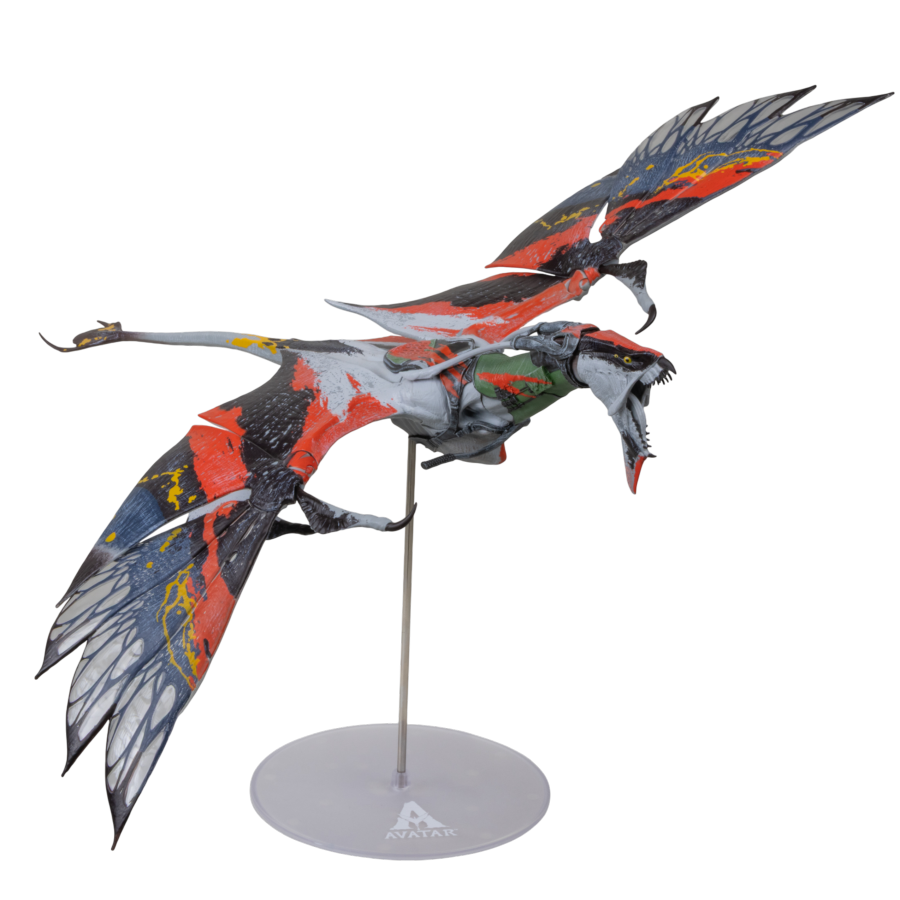 With Avatar: Fire and Ash, James Cameron takes audiences back to Pandora in an immersive new adventure with Marine turned Navi leader Jake Sully (Sam Worthington), Navi warrior Neytiri (Zoe Saldaña), and the Sully family. Quaritch's Banshee features highly detailed sculpt and deco Designed with Ultra Articulation for full range of posing Can be posed to fly and crawl as seen in the film Approximately 30 INCH WINGSPAWN. Works with 7-inch figures as riders (Sold Separately) Features a poseable wired tail and collector stand Figure is showcased in Avatar: Fire and Ash window box packaging Collect all Avatar: Fire and Ash collectibles from McFarlane Toys