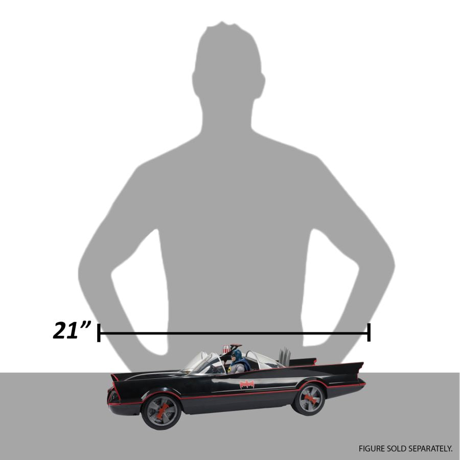 "To the Batmobile!" Batman and Robin have many gadgets in their arsenal, but none more hi-tech and stylish than the Batmobile - ready to power on with the touch of a button. When the Dynamic Duo find themselves faced with imminent danger, laser beams, magnets, and a parachute jettison button become quite useful. And there's no need to worry about villainous takeovers, good citizen, the Anti-Theft Activator is all the Caped Crusader needs to protect his invaluable vehicle. Features: - Incredibly detailed vehicle that is compatible with most 7" scale DC Multiverse figures - Based on the classic 1960's TV show - Designed with rolling wheels and rotating steering wheel - Figure not included - Collect all McFarlane Toys DC Multiverse figures and vehicles