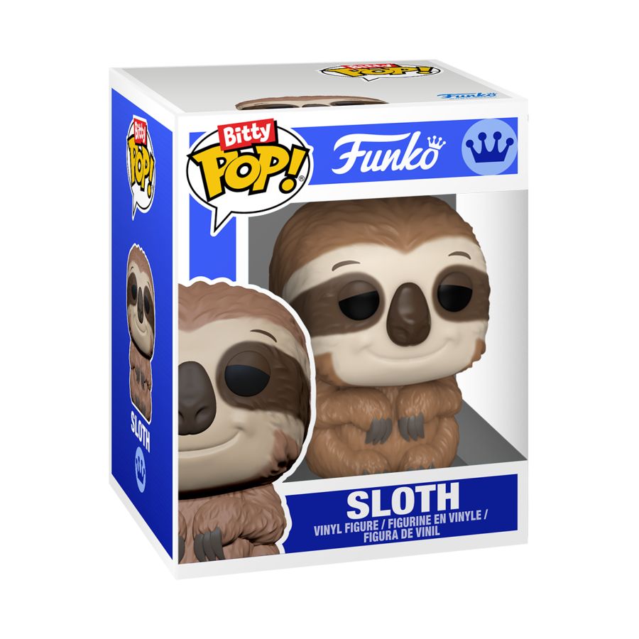 The world of POP! is getting bigger - and smaller - with Bitty POP! collectibles! Now, you can add some style to your collection with Bitty POP! Accessories! This exclusive 4-pack includes 1 Bitty POP! Sloth and 3 Bitty POP! Pin Cases. Bitty POP! Pin Cases can each hold one Bitty POP! collectible. Bring your collection on the go by fastening these Bitty POP! Pin Cases to your favorite outfit or accessory. Mix and match your Bitty POP! collectibles in the clear acrylic Bitty POP! Pin Cases for more wearable fun! Bitty POP! figure is packaged in a hard acrylic display case with a detachable bottom lid. The detachable bottom lid doubles as an acrylic base to which the Bitty POP! figure is adhered. Vinyl figure is approximately 0.9-inches tall. Acrylic Pin Cases are approximately 1.55" H x 1.25" W x 1.2" D and fit all standard Bitty POP! cases. Warning: Choking Hazard. Collectibles are small. Not for children under the age of 3 years old. Warning: Pin contains functional sharp points.