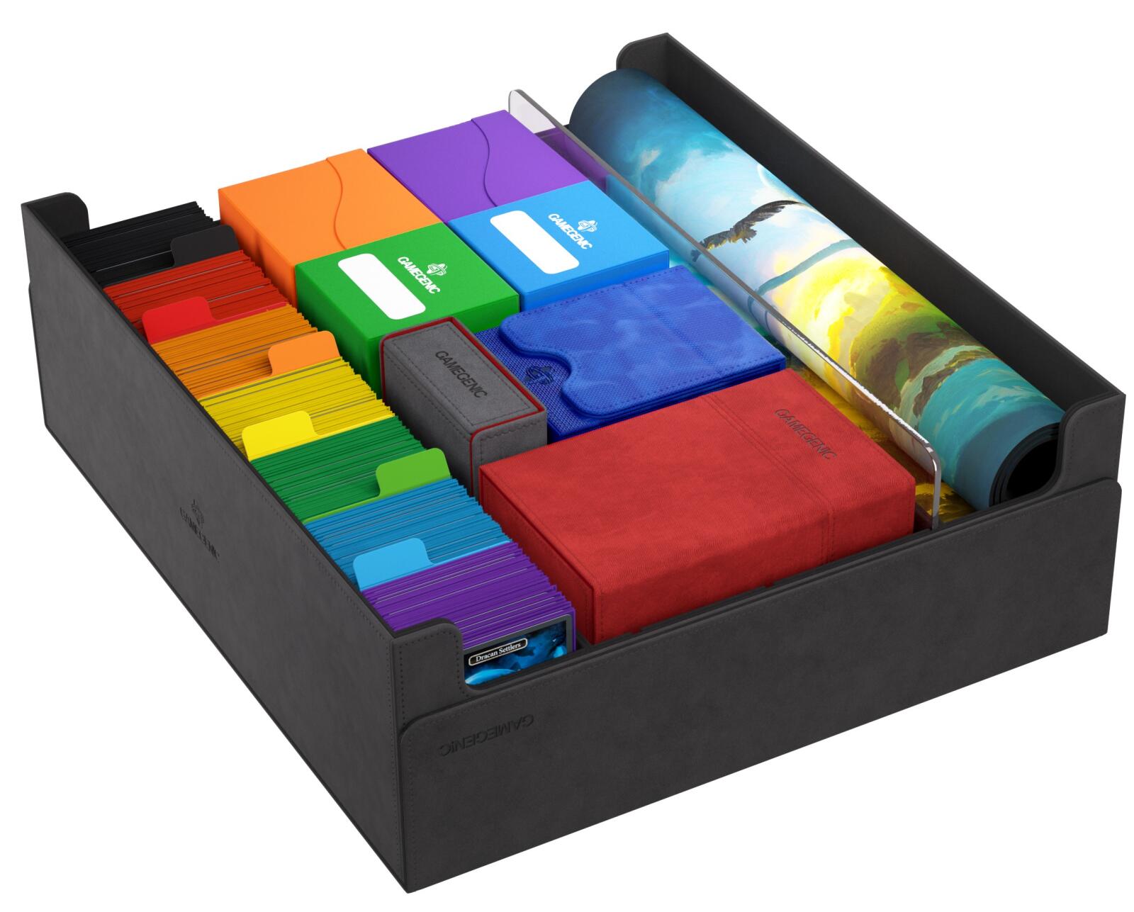 This premium multifunctional storage solution for cards and deck boxes gives you almost endless options to gather, hold, and sort your valuable card collection. It includes signature Gamegenic features like the shiftable and removable acrylic space divider and the well-established convertible system.