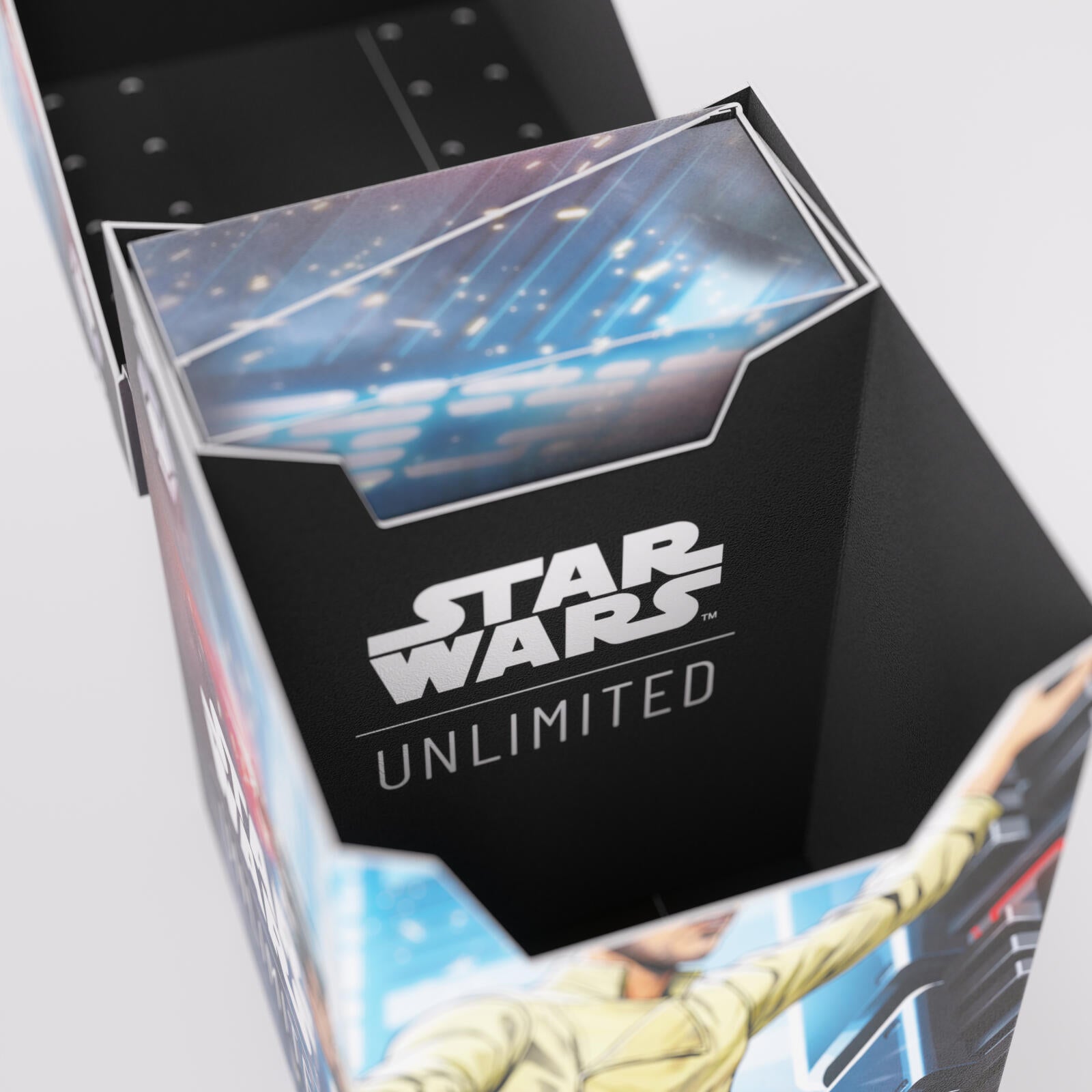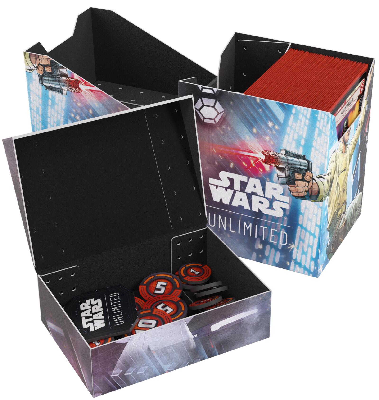 The Star Wars™: Unlimited Soft Crate is the all-in-one affordable solution for all Star Wars: Unlimited players. This full color printed and officially licensed deck box is packed with ingenious features. It protects a full double-sleeved deck of cards and includes an innovative token box!