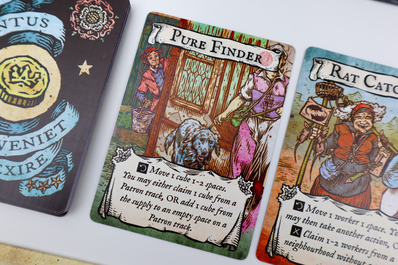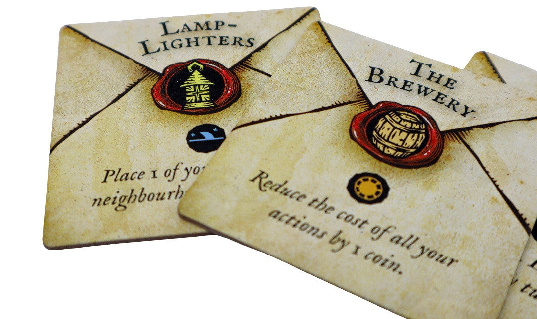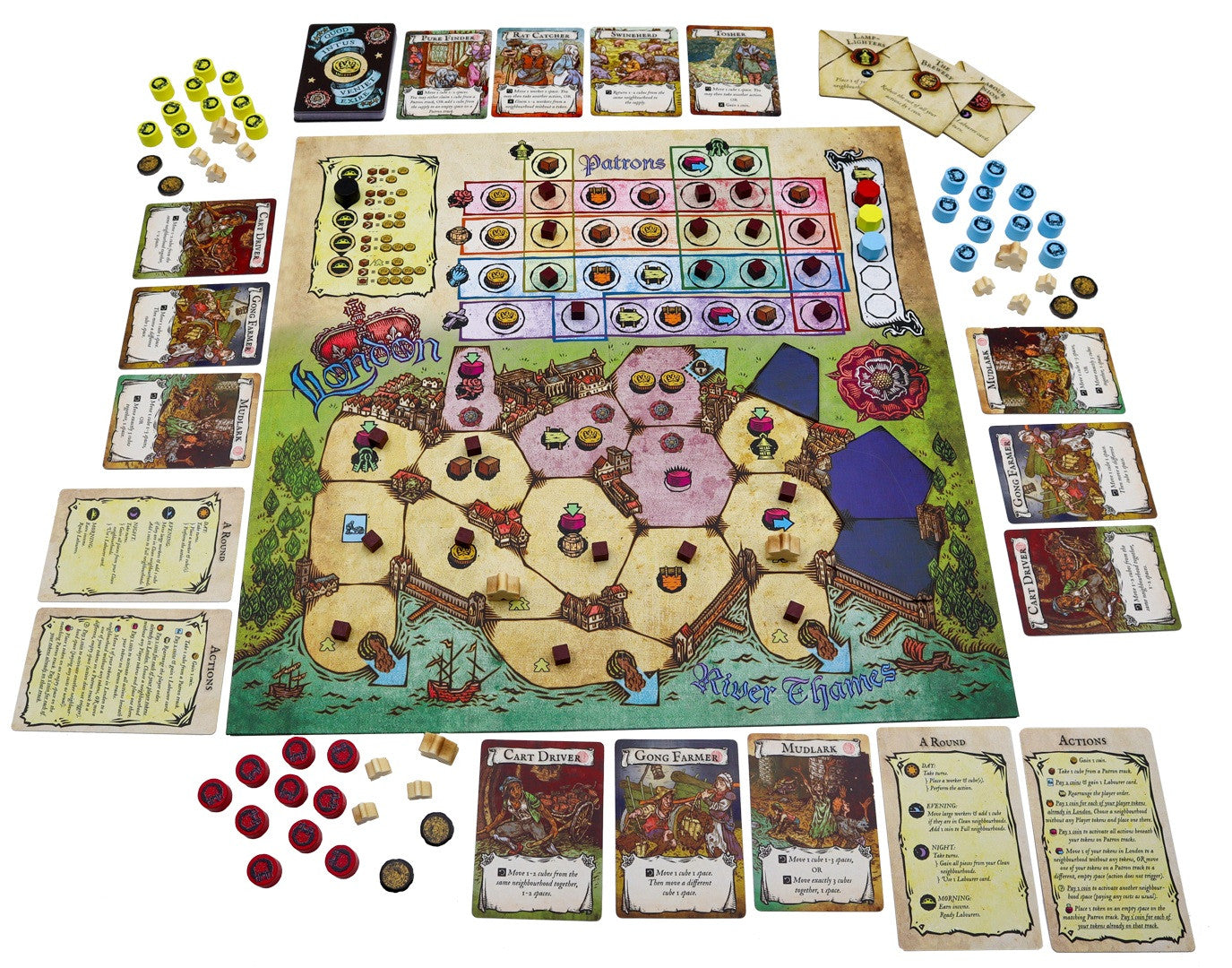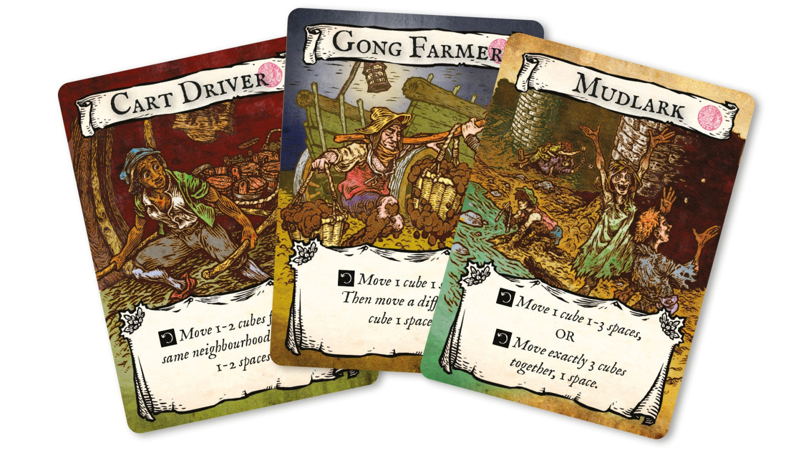 By night, Labourer cards will be used to carefully manoeuvre waste cubes through the narrow streets of London to turn a profit and to recruit workers.
