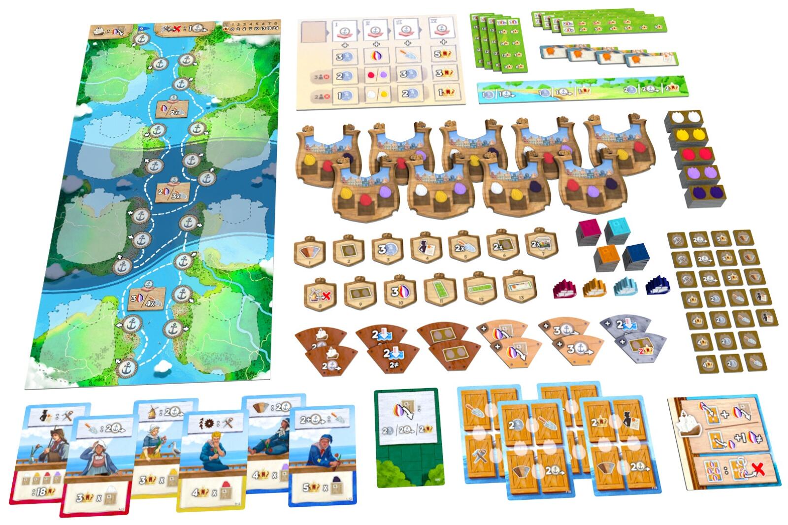 Windmill Valley: Blooming Sails significantly changes how the Conduct Foreign Trade action works. Players now sail with their Ship between ports and may spend their Tulip Bulbs for various rewards. Moreover, the position of their Ship determines the benefits they may gain when advancing on the Calendar. The Calendar is also updated and allows players to choose if they want to use the regular or expert variant.
