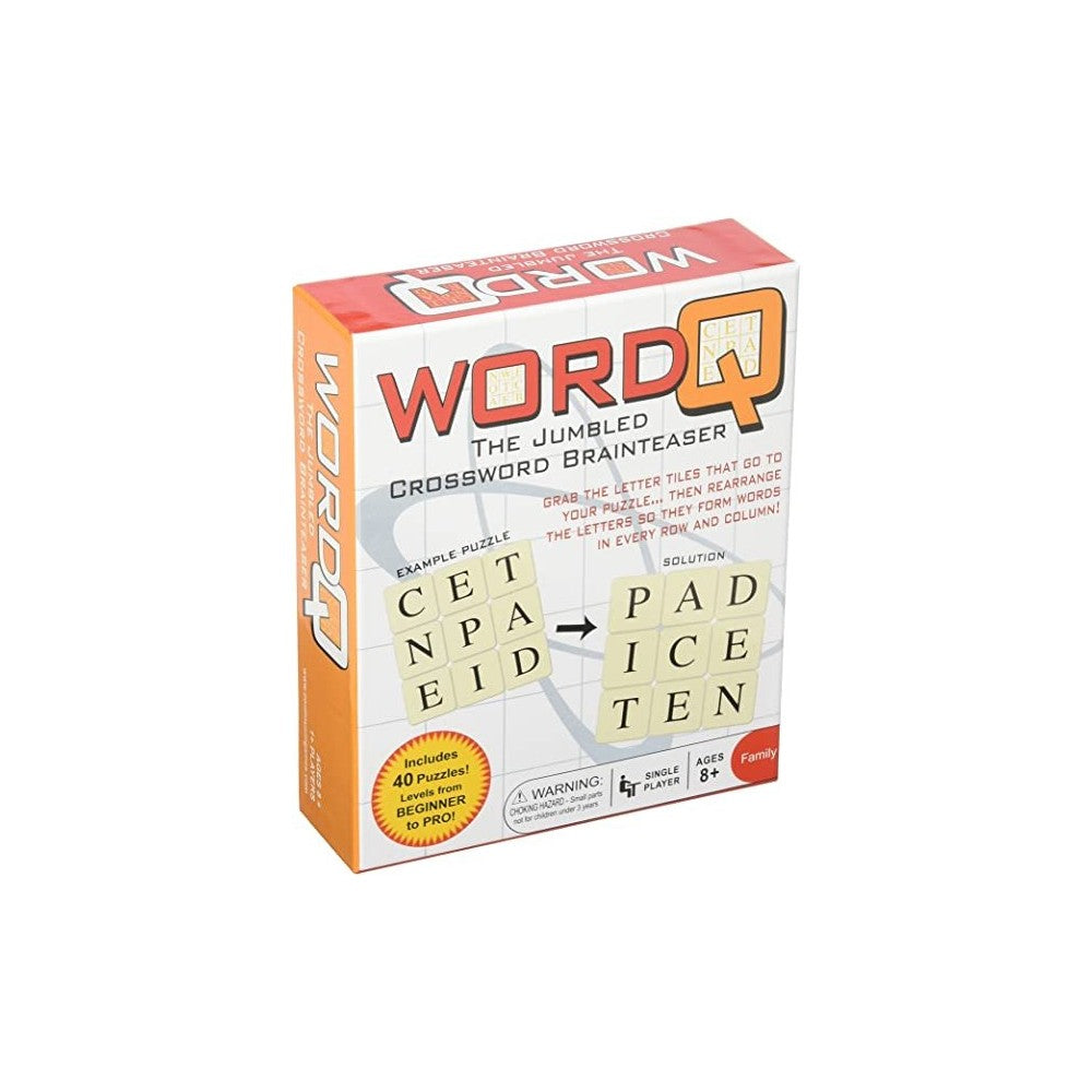 The jumbled crossword brainteaser! Choose a puzzle from the Word Q book and setup the letter tiles that are shown in the puzzle. Then, rearrange the letters in a grid-like configuration so they form words in every row and column.