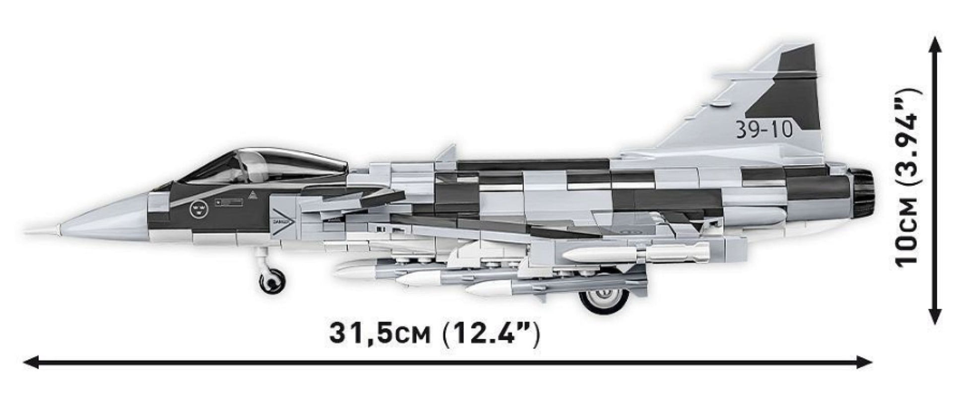 The SAAB JAS 39 Gripen E can be built in the colours of the Swedish Air Force using 480 COBI construction blocks, issued under the license of the SAAB armaments company. The set has been carefully designed in a 1:48 scale model. The blocks are covered with high-quality prints. The set includes a special pilot body that can be placed in an opening cockpit. The whole set is complemented by a block display stand with a plate containing the name of the set and the state flag of Sweden! Thanks to the intuitive instructions, construction is simple and will not cause problems for less advanced builders. The set will also meet the expectations of aviation enthusiasts, military and block enthusiasts. JAS 39 GRIPEN E in Swedish colour will look great in your collection! Build your passion with COBI! Features: - 480 high-quality blocks - Produced in the EU by a company with over 20 years of tradition - The blocks meet the safety standards of products for children - Fully compatible with other brands of construction blocks - Blocks with prints do not scratch or smear and do not fade during play or under the influence of temperature - Clear and intuitive instructions based on illustrations and step-by-step directions - 100% prints, no stickers - Block display stand - A plate with the name of the set