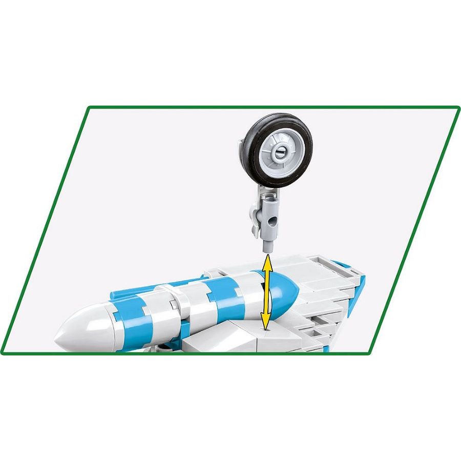 The COBI MIG-17 model aircraft was designed in a 1:32 scale and consists of 575 high-quality blocks. All markings, emblems and inscriptions on the model are prints that do not wear off during use. The set has movable elements such as wheels and an opening cabin in which you can place the detailed pilot figure. The camouflage reproduced from the blocks is especially beautiful. The set includes a display stand with a plate with the name of the set and the nationality mark. Thanks to the intuitive instructions based on clear illustrations the construction is simple. The plane is a must for all fans of aviation, military and military technology. Features: - 575 high-quality blocks - Produced in the EU by a company with over 20 years of tradition - The blocks meet the safety standards of products for children - Fully compatible with other brands of construction blocks - Blocks with prints do not scratch or smear and do not fade during play or under the influence of temperature - Clear and intuitive instructions based on illustrations and step-by-step directions - 100% prints, no stickers - Block display stand - Nameplate - Pilot figure