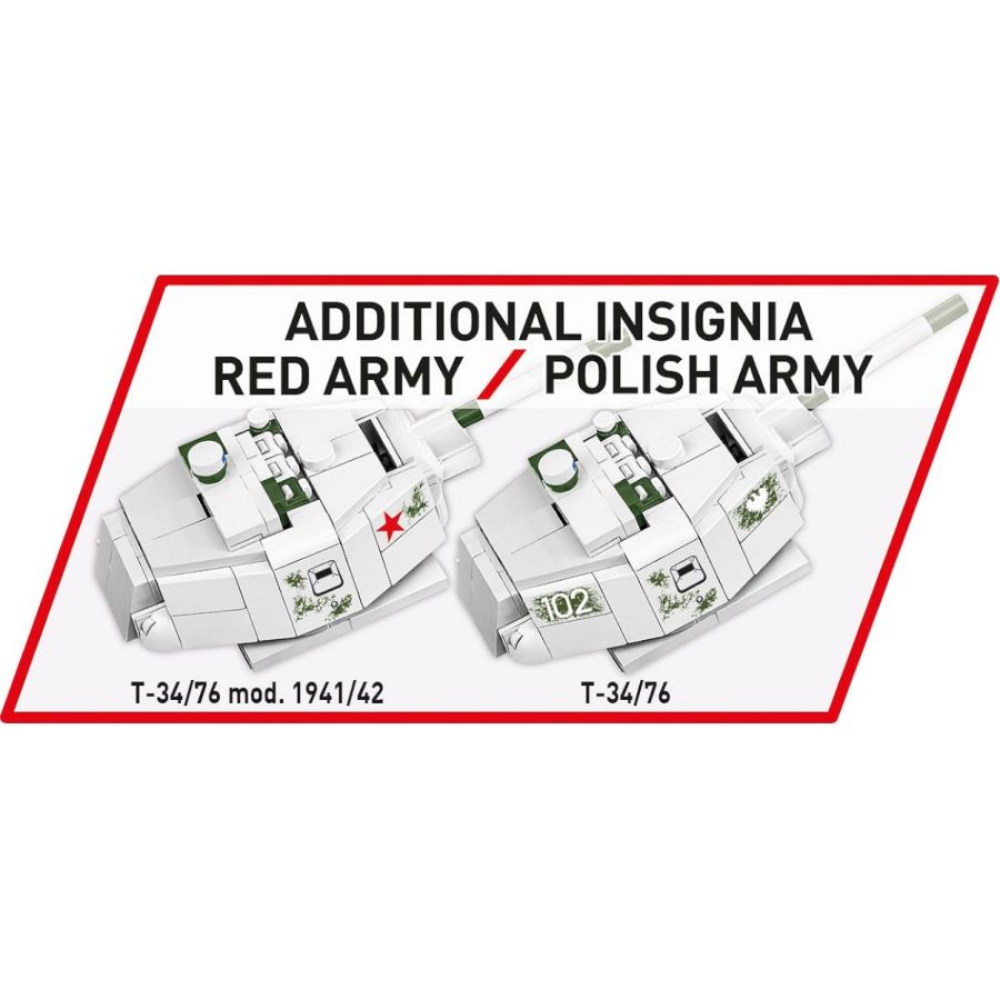 The T-34 tank is one of the most important tanks in history. It was developed by the Soviet Union in the interwar period and played a key role during World War II. The block model from COBI is durable and perfectly reflects the dimensions and shapes of its historical inspiration. In addition, the tank has working tracks. The turret and barrel are also movable. After removing the turret you can look inside the vehicle. Under the service hatch you can place a block model of the engine. The model has durable prints imitating equipment details and markings (Soviet and Polish to choose from). The T-34/76 tank, also known simply as the T-34, was one of the most important tanks in history and played a key role during World War II. In the 1930s Soviet engineers began work on a new medium tank to replace the older T-26 and BT-7 models. In 1939 prototypes were created, designated as A-20 and A-32. The final model, the A-34, became the basis for mass production and was named the T-34. T-34 prototypes underwent intensive testing and in 1940 mass production began in Kharkov. The first models had a 76.2mm L-11 cannon, which was quickly replaced by the more effective F-34 cannon. The T-34 first saw combat during the German invasion of the Soviet Union in June 1941. Despite initial logistical and training problems, the T-34 proved to be extremely effective on the battlefield. Its sloped armor, good mobility and powerful armament made it an opponent that German tanks had serious problems with. T-34 tanks also found a place in the 1st Warsaw Tank Regiment, which was part of the 1st Tadeusz Kosciuszko Infantry Division. T-34 tanks with a white eagle painted on their turret fought, among other battles, at Lenino and at the Warka-Magnuszewski bridgehead. Features; - 852 high-quality elements - Manufactured in the EU by a company with over 35 years of tradition - The blocks meet the safety standards of products for children - Fully compatible with other brands of construction blocks - Blocks with prints do not scratch or smear and do not fade during play or under the influence of temperature - Clear and intuitive instructions based on illustrations and step-by-step directions - 1 figure - Name plate - Removable mini engine model - Scale 1:28 Model dimensions (L x W x H): 260 mm (9") x 110 mm (4.7") x 90 mm (3.9")