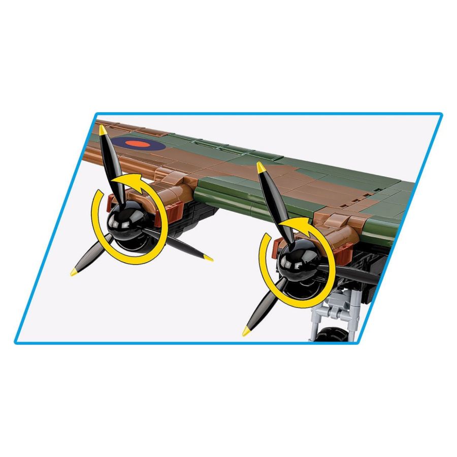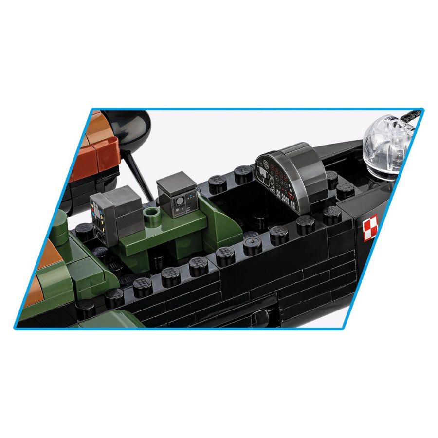 The Avro Lancaster B Mk.I/III was a key element of the British bombing strategy during World War II. Its ability to carry large bomb loads, durability and versatility made it one of the most effective and versatile bombers used by the Allies. The new model has the markings of the Polish 300th Bomber Squadron "Ziemia Mazowiecka". Additionally, the model has movable propellers, retractable landing gear, opening bomb bay with block bombs, a block with the name of the set, a miniature reproduced interior and a figure of a Polish pilot from the 300th Bomber Squadron. The Lancaster's design began with the Avro Manchester design, which was suffering from engine reliability problems. With the addition of two additional engines and other modifications, the Lancaster was born. The first Lancaster prototype (BT308) flew on 9 January 1941. The aircraft quickly proved superior to the Manchester and production of the Lancaster began the same year. The Mk.I was the first production version, powered by Rolls-Royce Merlin XX engines. The Mk.III differed from the Mk.I mainly in its Packard Merlin engines, which were produced under licence in the USA. The Lancaster entered operational service in February 1942 with No. 44 Squadron RAF. It quickly became the RAF's main bomber. Used primarily for night bombing, the Lancaster was key to many important bombing operations, including the bombing of Hamburg (Operation Gomorrah) and Dresden. Lancasters were used for various special missions, such as Operation Chastise (raids on dams), as well as for dropping heavy bombs, like the Grand Slam and Tallboy, which were capable of destroying heavily fortified targets. Features; - 1595 high-quality elements - Manufactured in the EU by a company with over 35 years of tradition - The blocks meet the safety standards of products for children - Fully compatible with other brands of construction blocks - Blocks with prints do not scratch or smear and do not fade during play or under the influence of temperature - Clear and intuitive instructions based on illustrations and step-by-step directions - 1 figure - A block with the name of the set - Scale 1:48 Model dimensions (length x width): 45.5cm (17.9") x 64.5cm (25.4") 300th Bomber Squadron "Ziemia Mazowiecka" was an important part of the Polish contribution to the Allied war effort during World War II. Its members fought with great sacrifice, and their courage and skill contributed to the RAF's successes in the bombing campaign against the Third Reich. The squadron remains a symbol of the Polish contribution to the fight for freedom and independence during one of the most difficult periods in history.