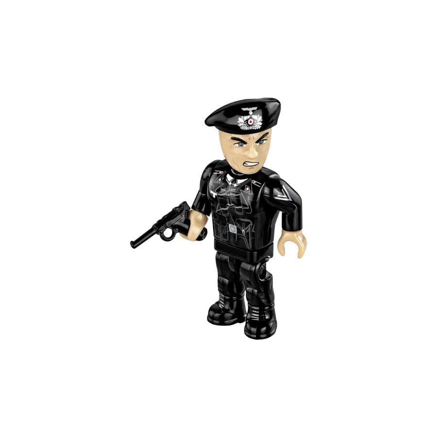 The Panzerkampfwagen II tank was one of the most important German tanks in the initial phase of World War II. The block Pazner II consists of 813 elements and is designed in 1:28 scale. The blocks contain high-quality prints that do not rub off during play. The model has an opening hatch in which a tankman figure can be placed. The turret rotates 360 degrees, the barrel of the cannon with a coupled machine gun can move up/down. Under the service flap there is a block engine, which can also be displayed next to the model. The caterpillar traction works when you move the tank with during play. The set includes a figure of a tankman in a beret. The soldier is equipped with a P08 Parabellum pistol. Build a historical Panzer II tank from World War II and discover its amazing details! The Panzer II Ausf. F was a German light tank, most intensively used in the initial phase of World War II. It is one of the later development versions of this vehicle. It was produced from 1941. The Ausf. F version had thicker armor (up to 35mm at the front), which increased the protection of the crew. The armament included a 20mm cannon and an MG 34 machine gun. Although the Panzer II was designed primarily as a reconnaissance tank, it was widely used during the campaigns in Poland, France and on the Eastern Front. Over time, when its armament and armor became obsolete, it mainly performed support and training functions. Features; - 813 high-quality elements - Manufactured in the EU by a company with over 35 years of tradition - The blocks meet the safety standards of products for children - Fully compatible with other brands of construction blocks - Blocks with prints do not scratch or smear and do not fade during play or under the influence of temperature - Clear and intuitive instructions based on illustrations and step-by-step directions - 1 figure - Name plate - Removable mini engine model - Scale 1:28 Model dimensions (length x width x height): 17.5 cm (6.9") x 9 cm (3.5") x 8.5 cm (3.3")