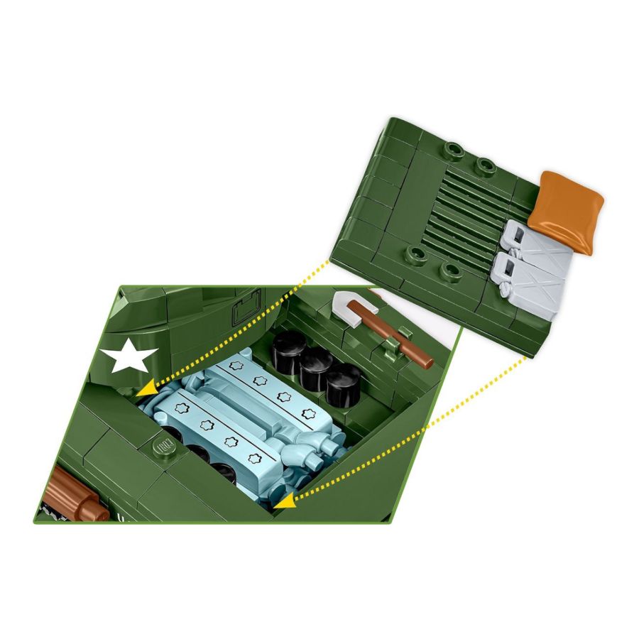 Build an iconic American tank with a full 5-man crew! The M4A2E8 Sherman, also known as the "Easy Eight," was an American version of the M4 Sherman medium tank, introduced at the end of World War II. It was equipped with an improved HVSS (Horizontal Volute Spring Suspension) suspension and a long-barreled 76 mm cannon, which improved the vehicle's stability and accuracy. With better armor and mobility, the "Easy Eight" was more effective against German medium tanks and its simple design made it easier to manufacture and repair. The brick model of the unique Sherman was developed in 1:35 scale and complements the collection of iconic vehicles published as part of the Historical Collection dedicated to World War II. The model, perfectly reproduced from 865 blocks, has working caterpillar traction. You can freely drive it on the floor and watch the working tracks! Move the turret in the range of 360 degrees and take aim by setting the cannon at the selected height. On the turret there is a Browning machine gun, which is an exact copy of the war original. The tank looks very attractive thanks to the many accessories attached to the hull, as well. You can see that it has already spent a long time on the front, and the 5-person crew attached to it are real veterans, about whom one could certainly make more than one film! The realistic figures have a lot of details and will certainly be a very valuable element of your collection! Rest assured that each of them has their own style and character. A block plate with the printed name of the tank will help you display your model even better. Build history, piece by piece, with COBI! Features; - 865 high-quality elements - Manufactured in the EU by a company with over 35 years of tradition - The blocks meet the safety standards of products for children - Fully compatible with other brands of construction blocks - Blocks with prints do not scratch or smear and do not fade during play or under the influence of temperature - Clear and intuitive instructions based on illustrations and step-by-step directions - 5 figures, full crew! - Name plate - Figure accessories - Scale 1:35 Model dimensions (length x width x height): 22.5 cm (8.85") x 10 cm (3.93") x 12.5 cm (4.92")